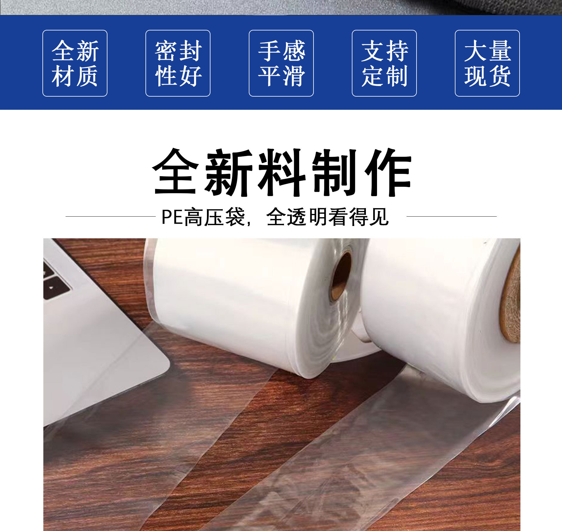 사용자 정의 재고 PE 튜브 소재 긴 스트립 투명 플라스틱 필름 투명 포장 가방 PE 플랫 포켓 두꺼운 방진스토어 가기