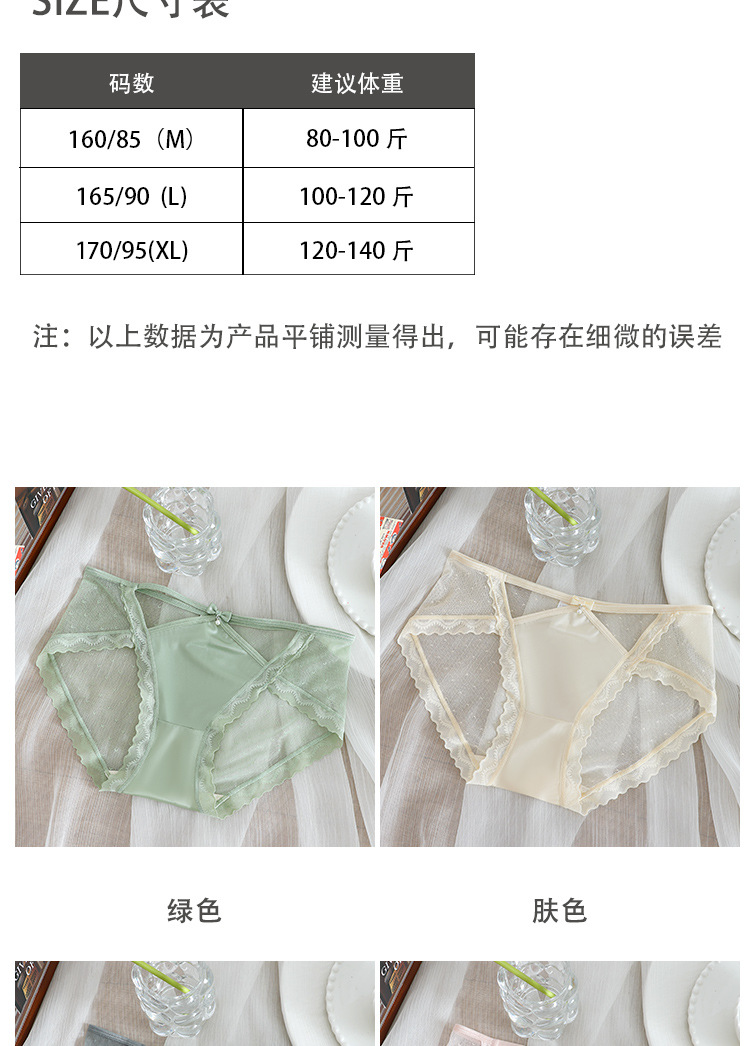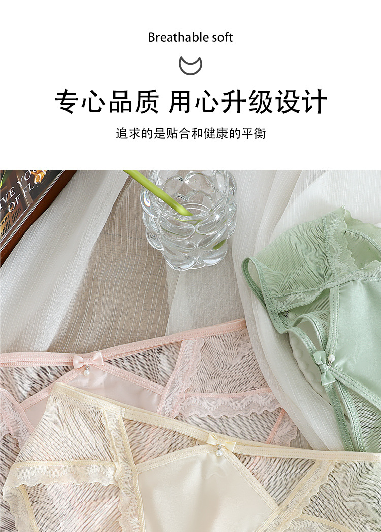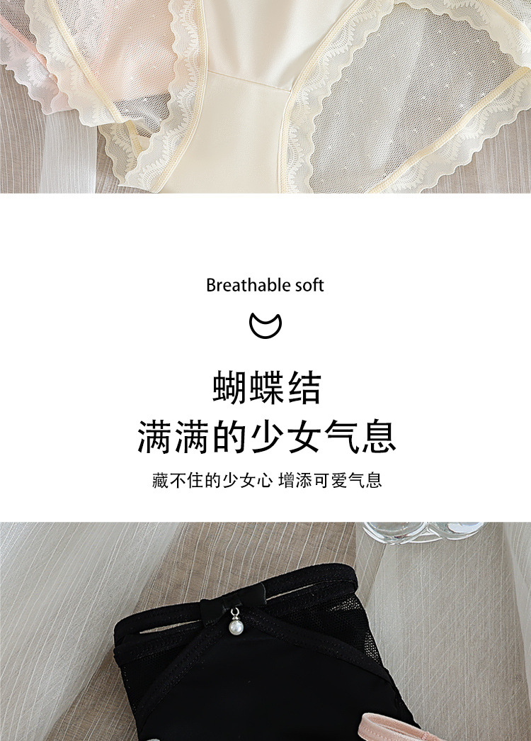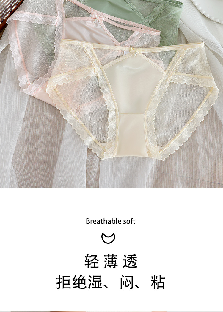 가벼운 럭셔리 프랑스 스타일 새틴 섹시한 레이스 속옷 여성용 할로우 메쉬 통기성 멀 베리 실크 크로트 미드 허리 여성 브리프스토어 가기