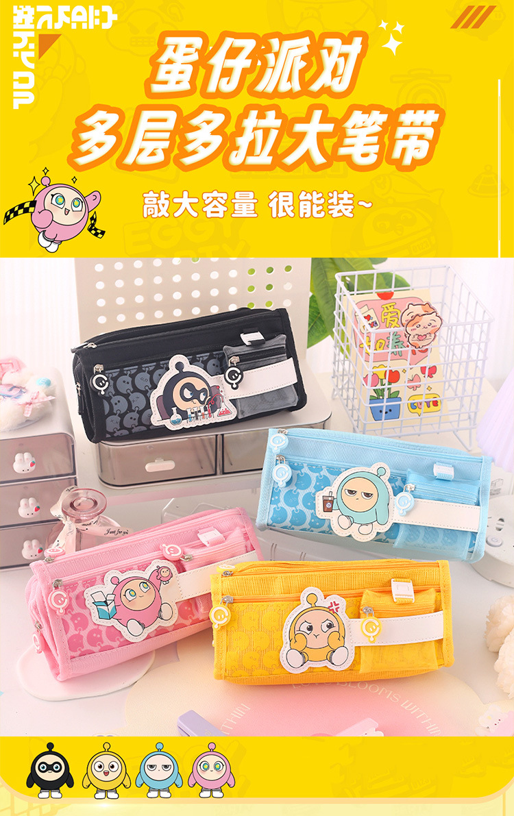 계란 파티 다층 도라 연필 가방 만화 계란 문구 보관 게임 주변 학생 문구 가방 연필 가방