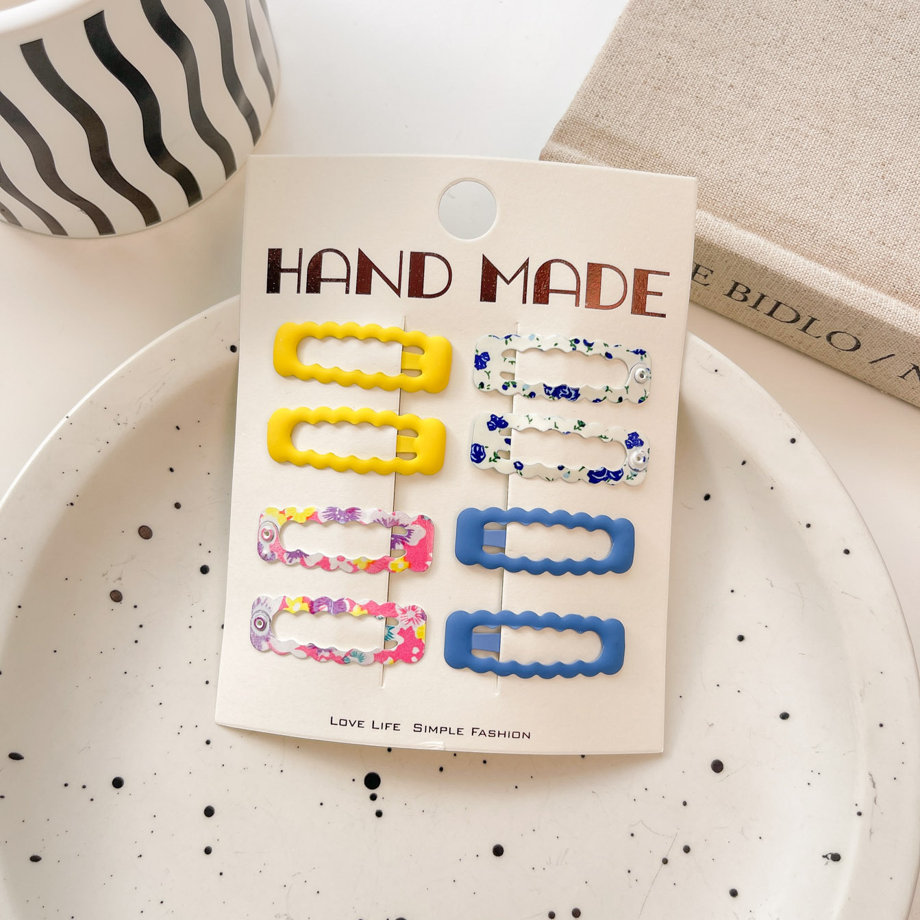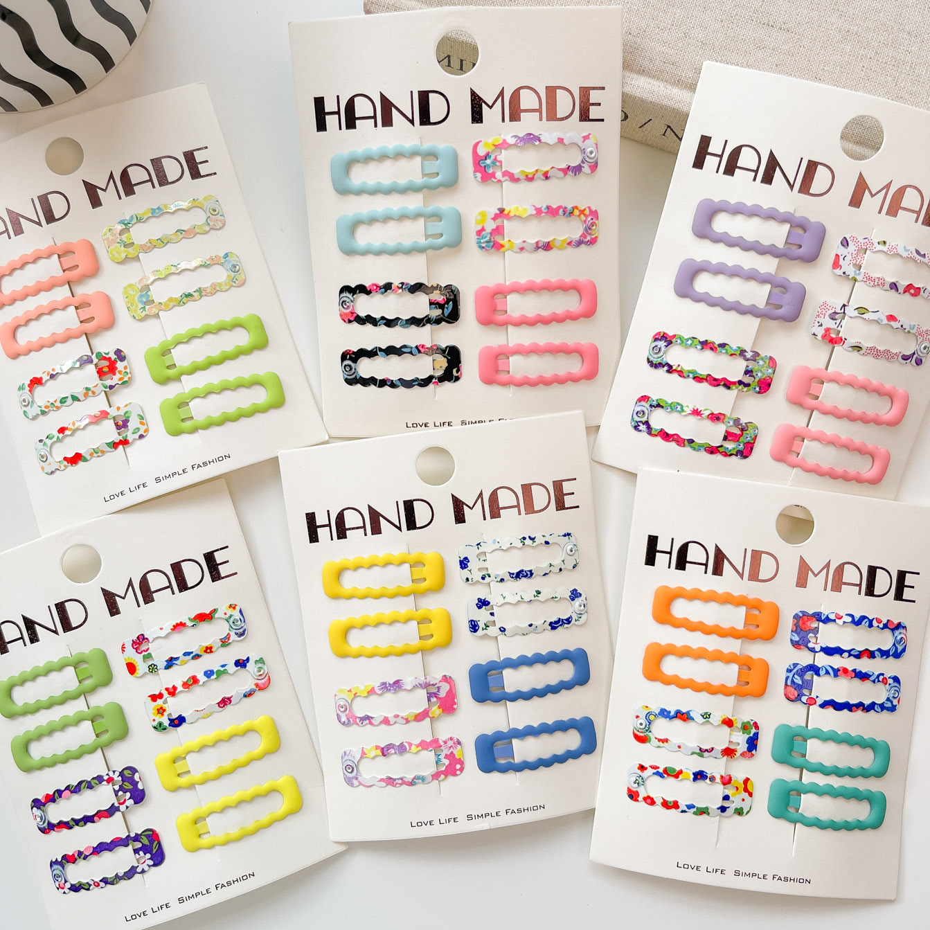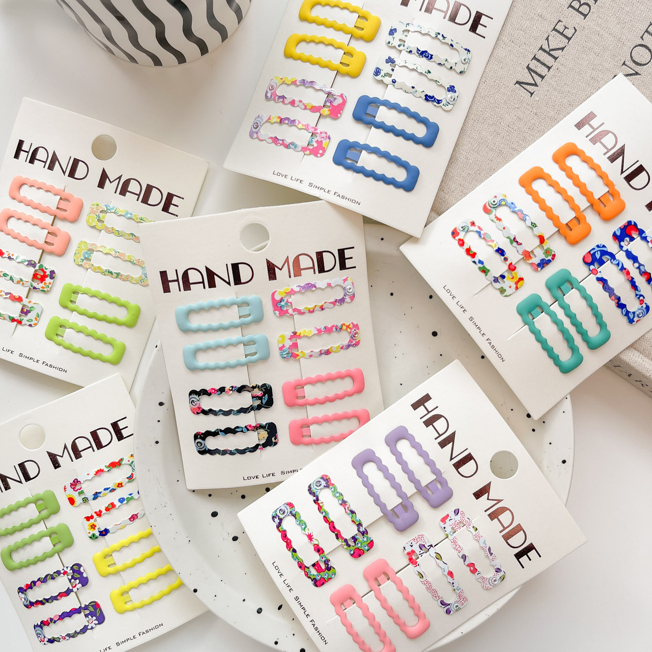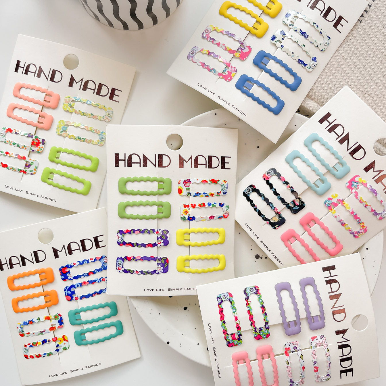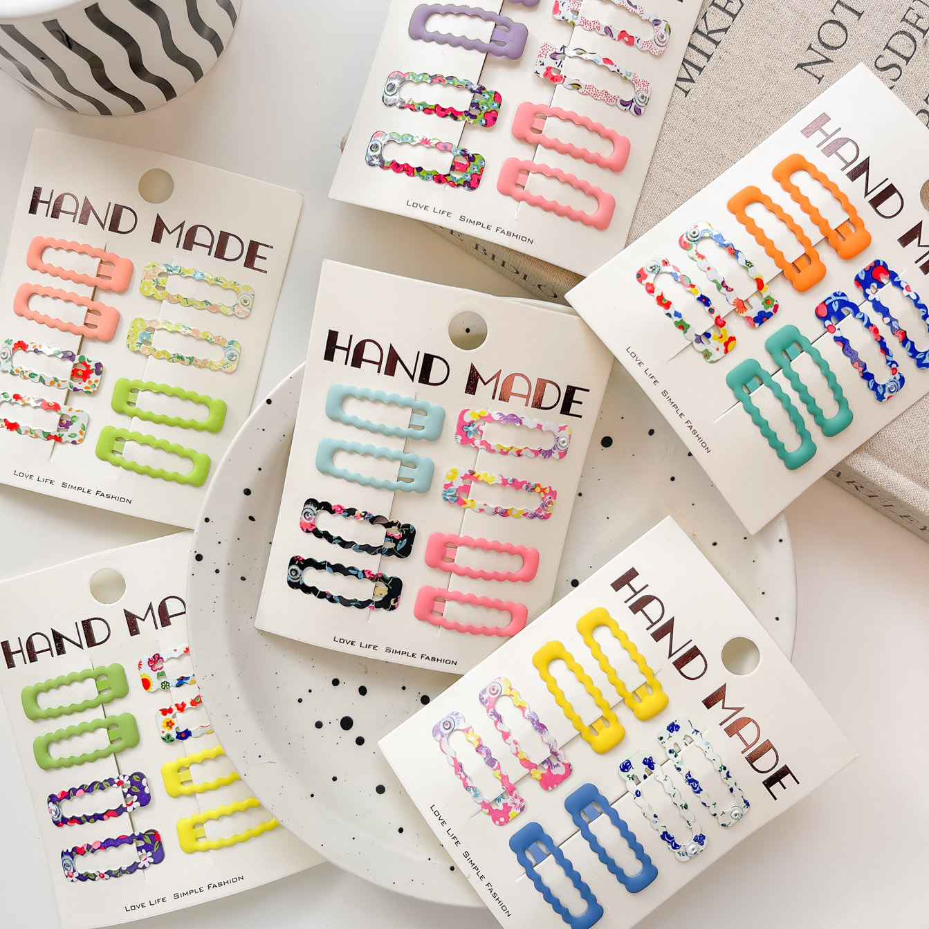 달콤한 캔디 컬러 웨이브 직사각형 어린이 BB 클립 귀여운 간단한 올 매치 플로럴 어린 소녀의 뱅 헤어 액세서리 헤어핀