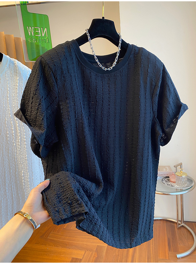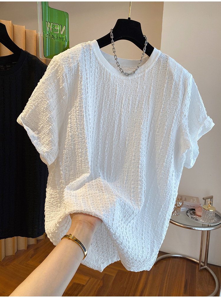 가벼운 럭셔리 틈새 디자인 센스 텍스처 센스 짧은 소매 티셔츠 남성 여름 주름 어깨 패드 느슨한 캐주얼 웨스턴 스타일 셔츠 탑스토어 가기