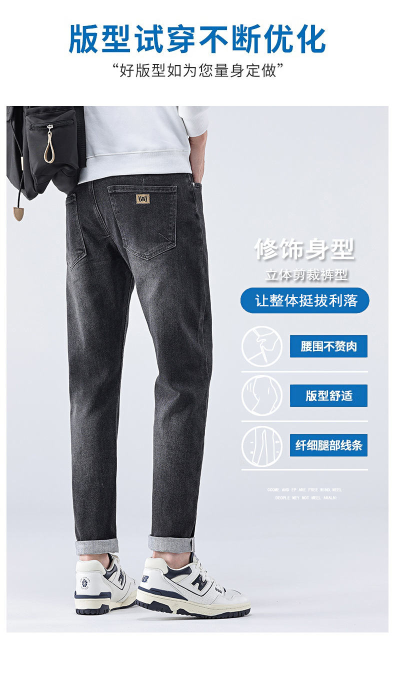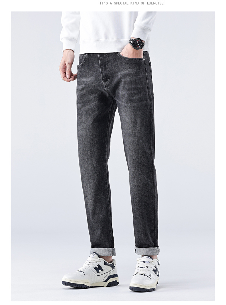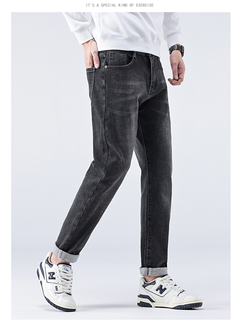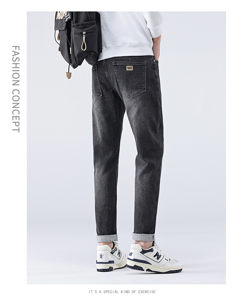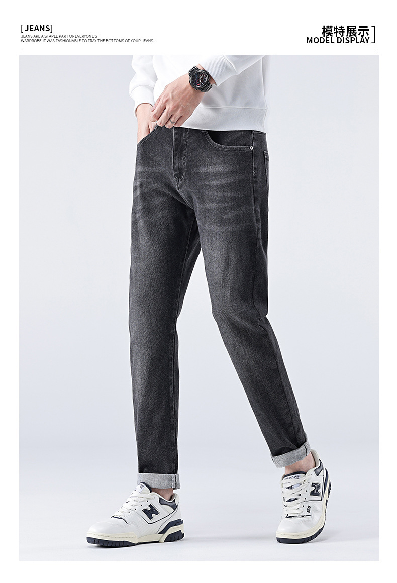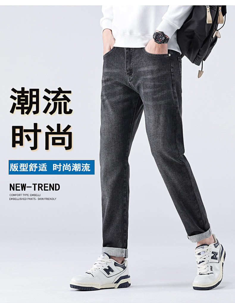 스트레치 청바지 남자 여름 슬림 핏 스트레이트 바지 새로운 한국 스타일 패셔너블 캐주얼 올 매치 롱 바지 남자 발스토어 가기