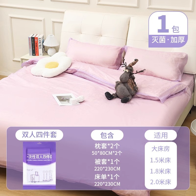 일회용 침대 시트 퀼트 커버 베개 케이스 커버 호텔 4 피스 세트 여행 더러운 침구 코튼 두껍게