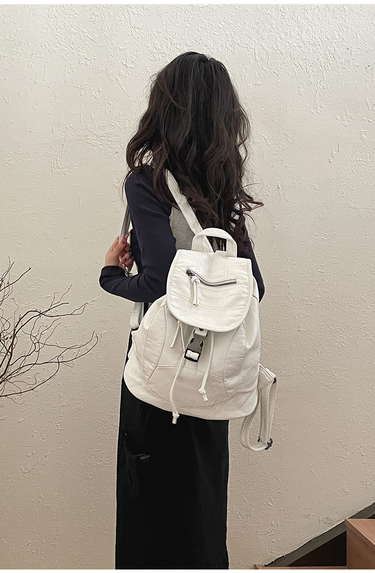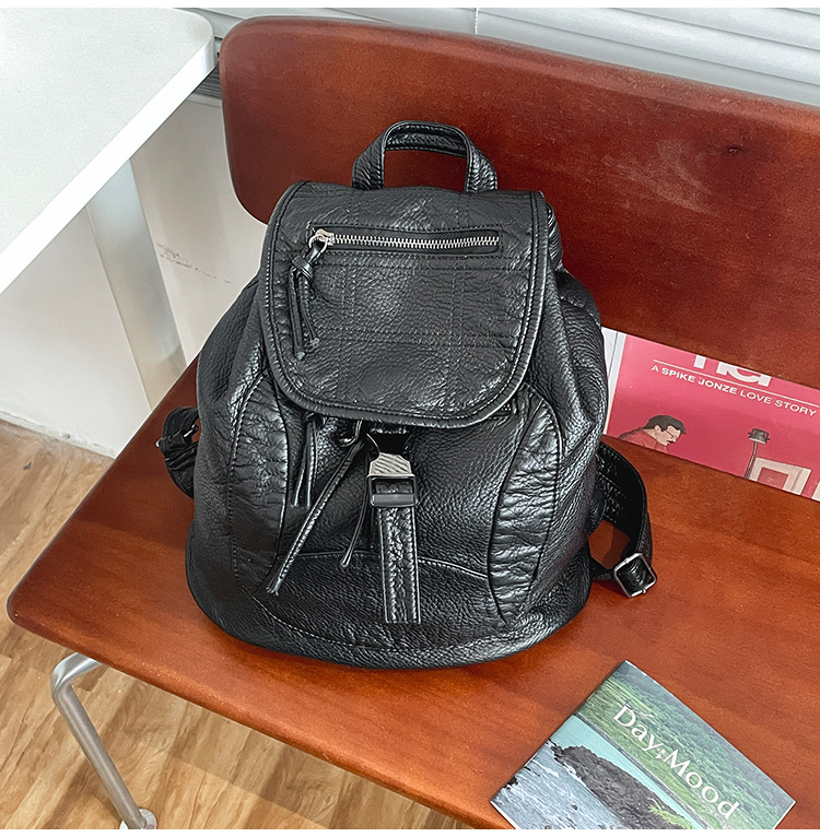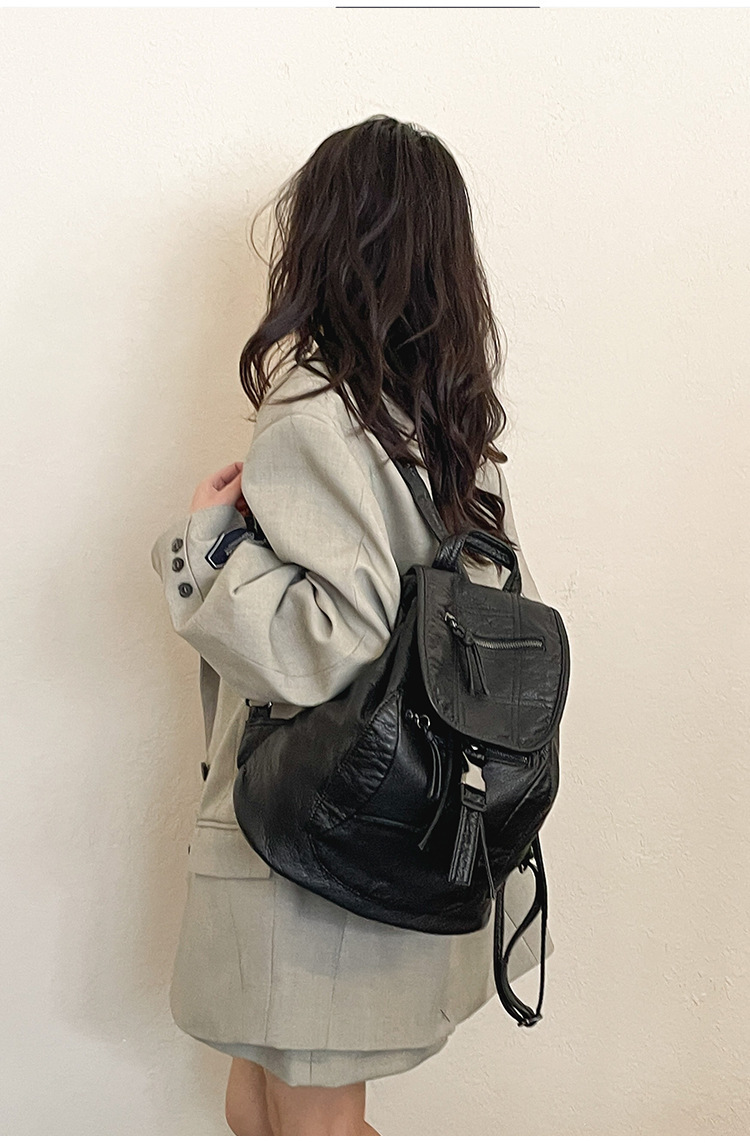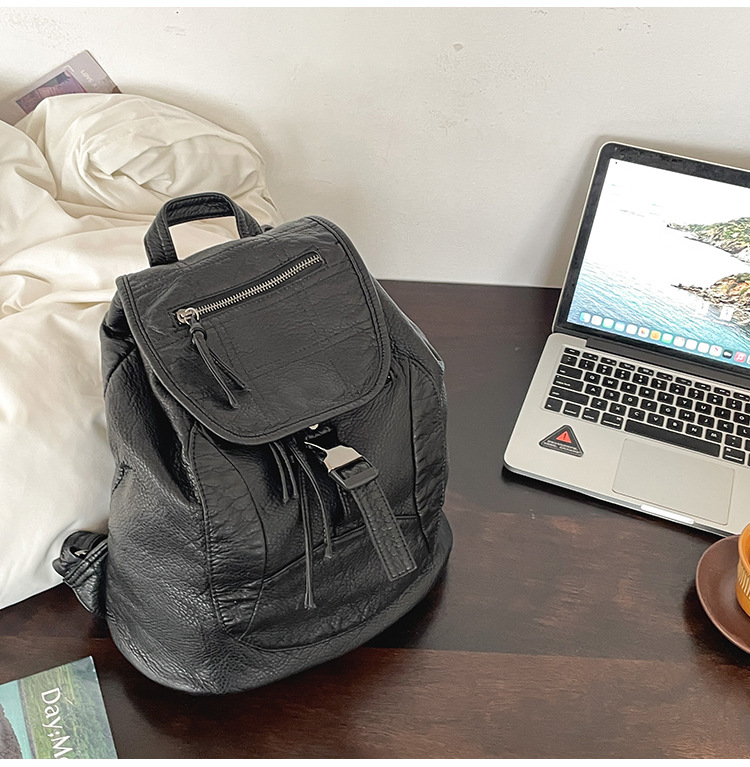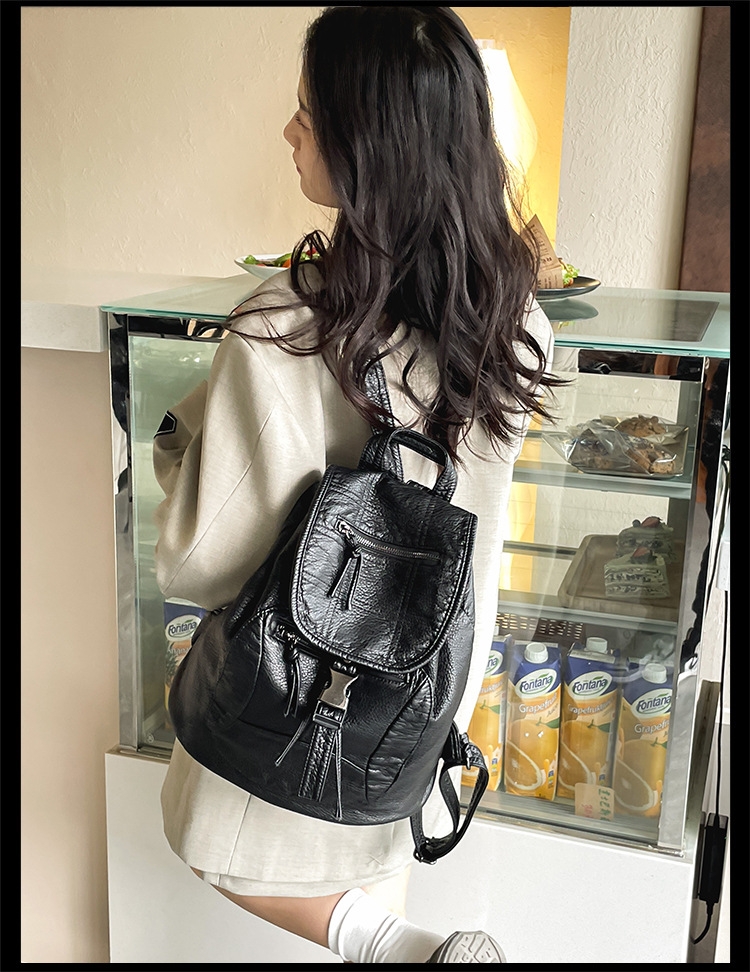 2024 새로운 미국 스타일 스파이스 소녀 세척 부드러운 가죽 대용량 여행 배낭 여성 고급 디자인 센스 작은 크라우드 백