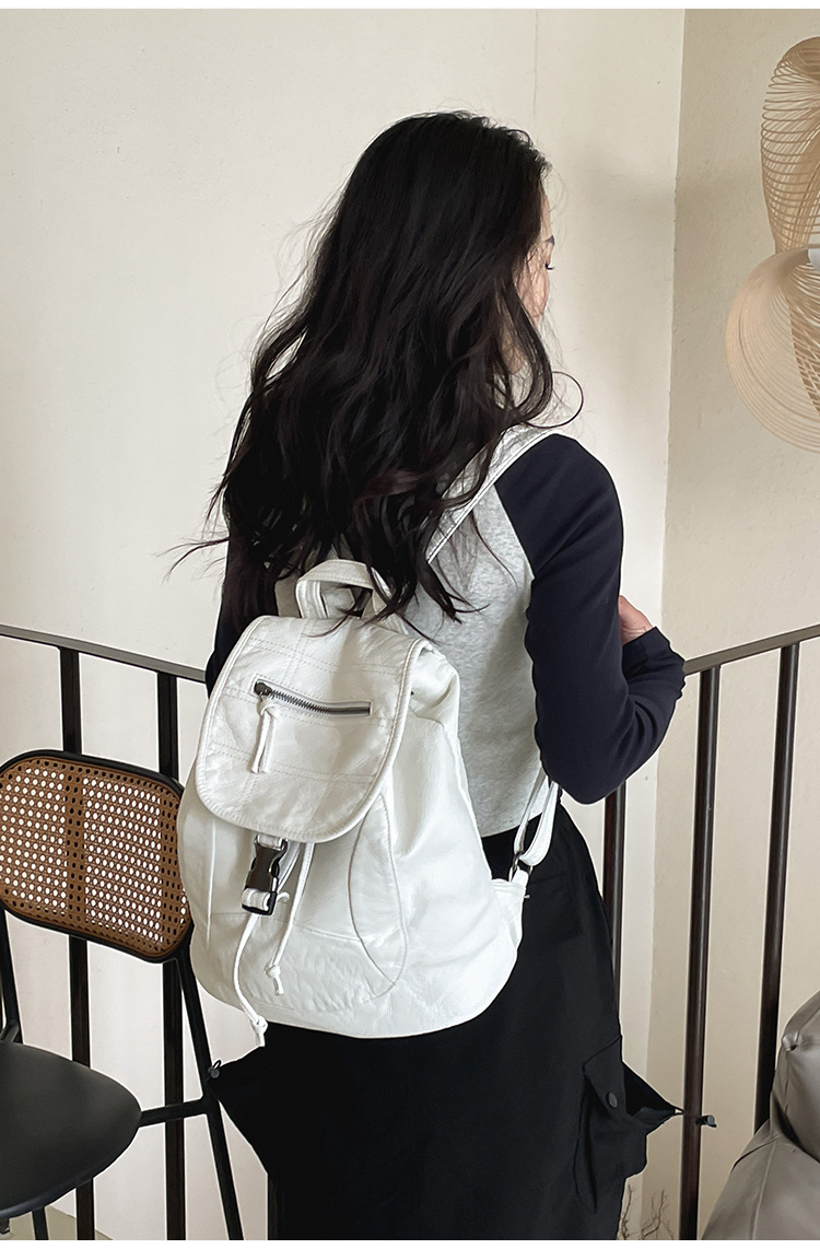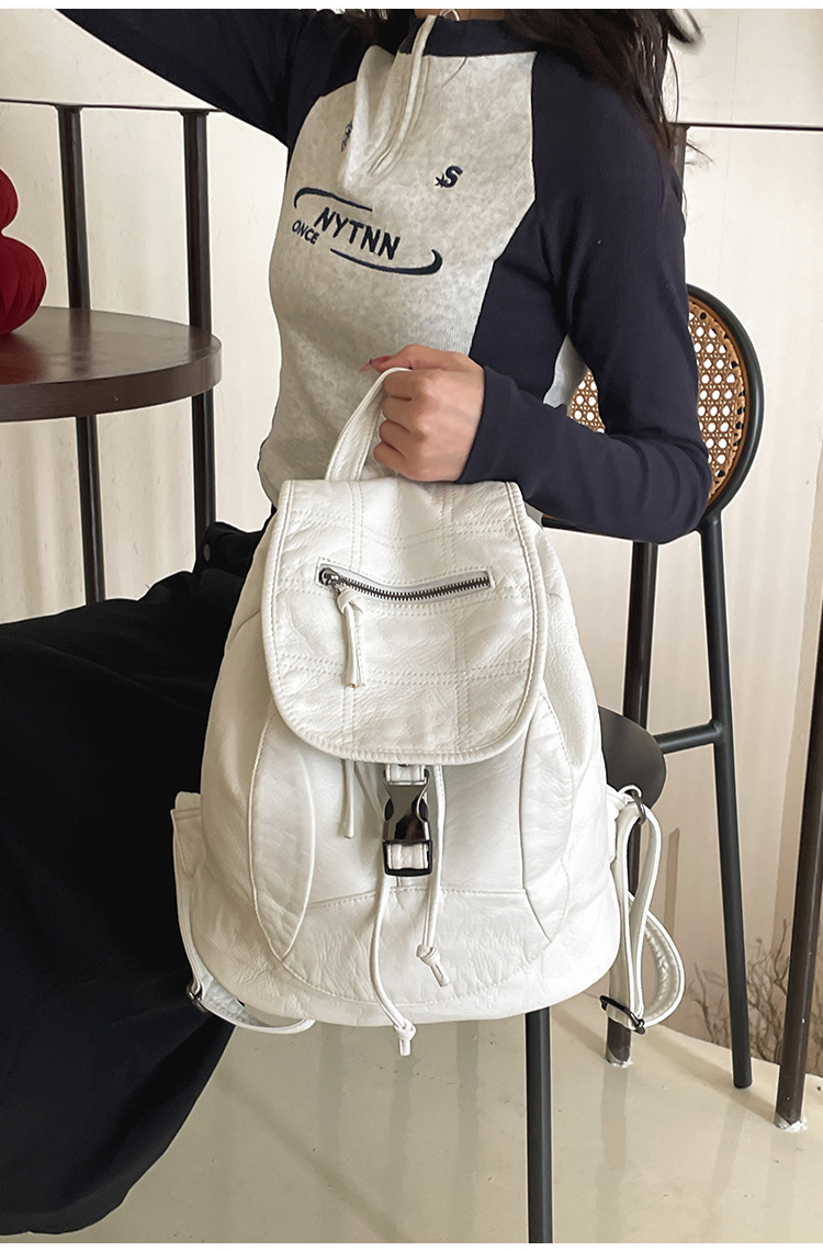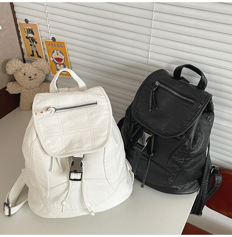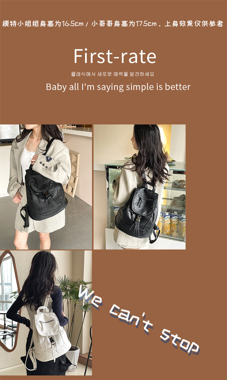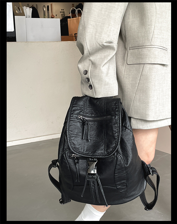 2024 새로운 미국 스타일 스파이스 소녀 세척 부드러운 가죽 대용량 여행 배낭 여성 고급 디자인 센스 작은 크라우드 백