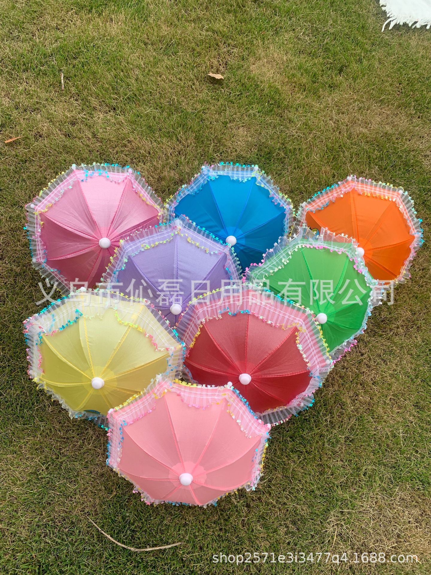 厂家直销彩花边半径15CM直径27cm左右。小伞每把约重40克。一件500个。