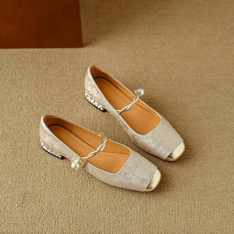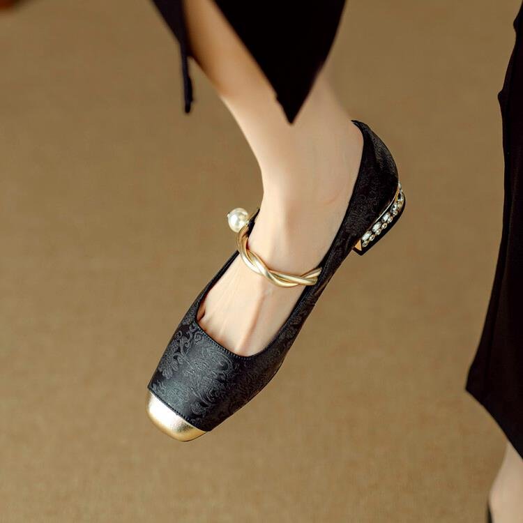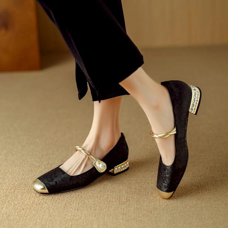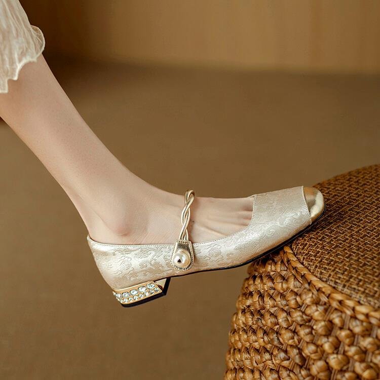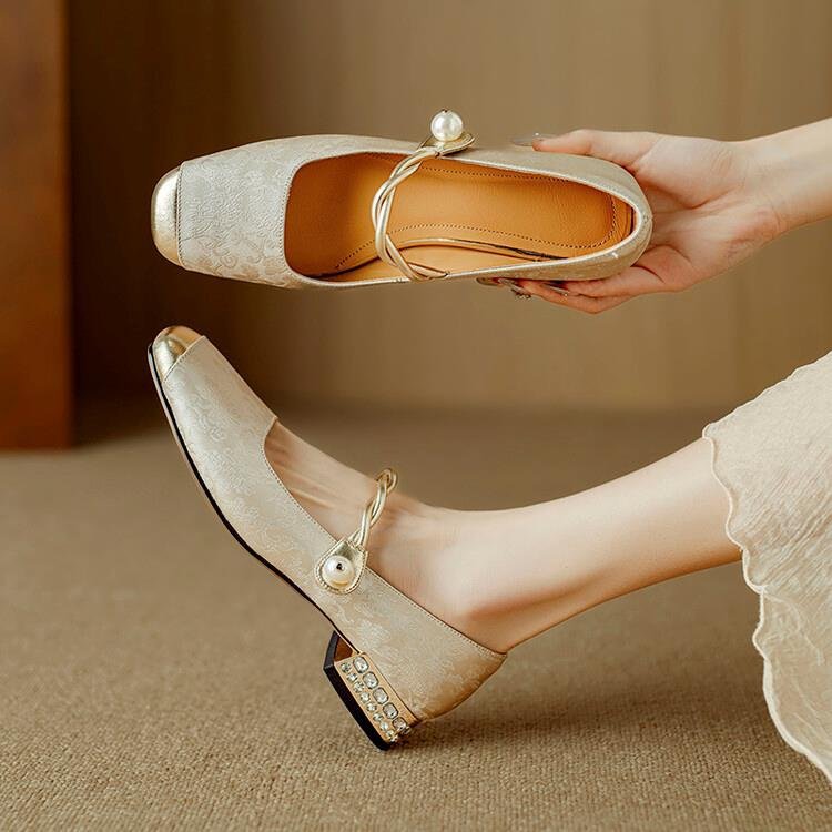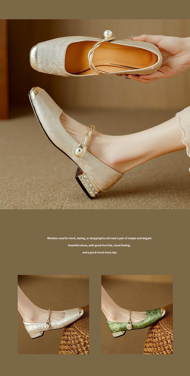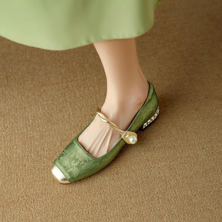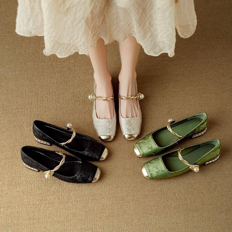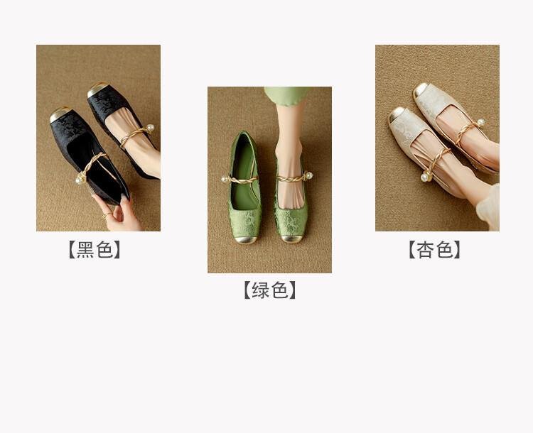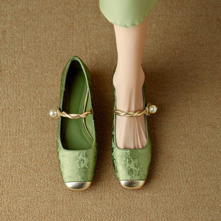 진정한 부드러운 가죽 국가 스타일 수제 신발 여성의 2024 새로운 여름 원피스 메리 제인 신발 라인스톤 플랫 슈즈 그린스토어 가기
