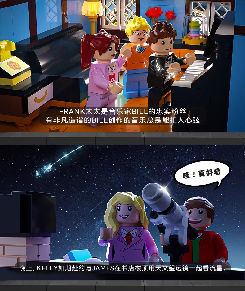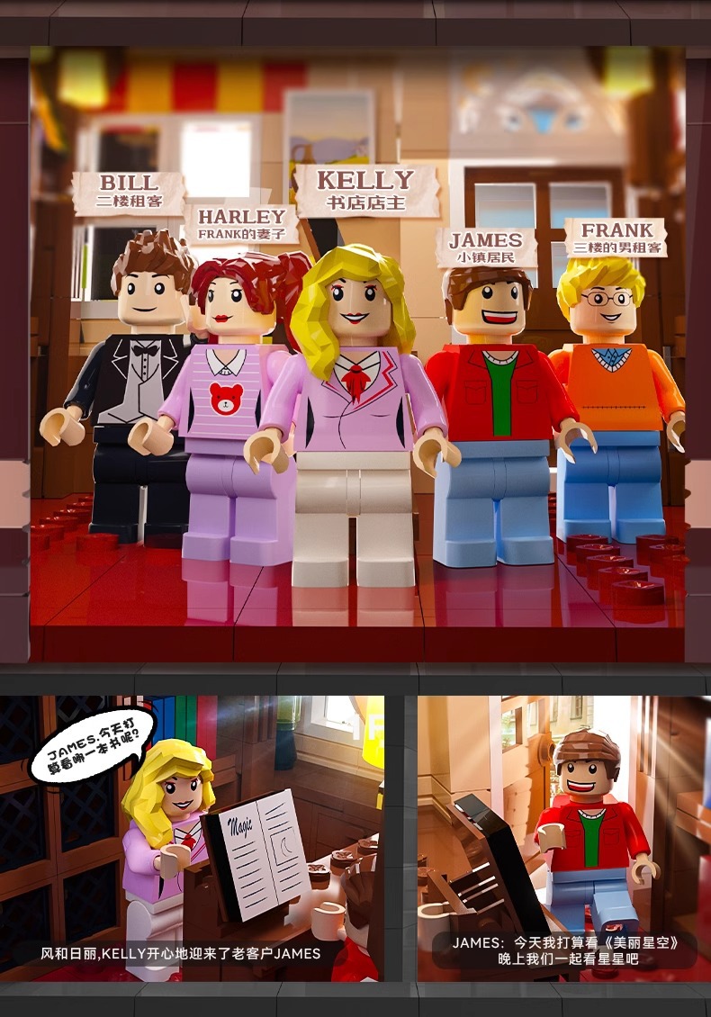 Jiale 특별 건물 블록 맞춤법 음악 가족 시리즈 Kelly 서점 유럽 건물 접합 스트리트 뷰 모델 조립 어린이 장난감스토어 가기