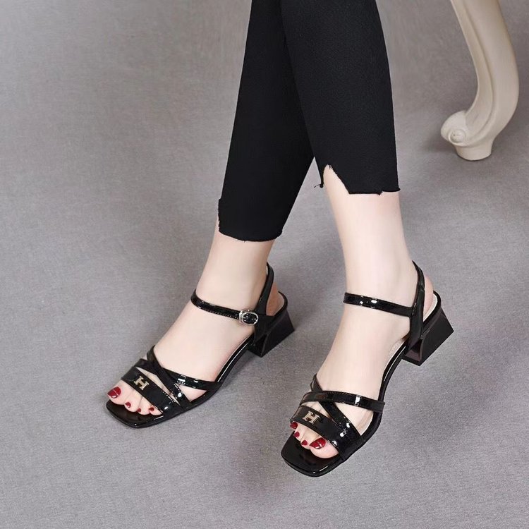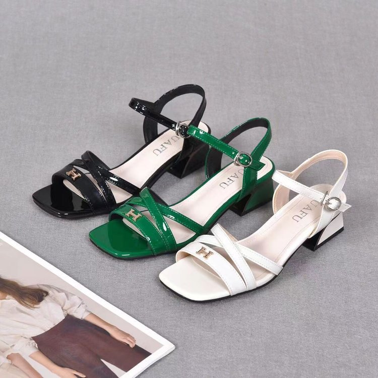 폭발 진짜 부드러운 가죽 하이힐 낮은 힐 샌들 여성용 두꺼운 힐 여름 새로운 중국 및 외국어 오픈 발가락 소프트 단독 트렌디스토어 가기