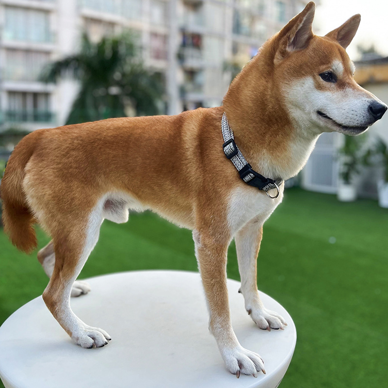 린넨 개 목걸이 견인 밧줄 애완견 보행 밧줄 대형 중간 작은 개 체인 목 소매 황금 머리 목 반지