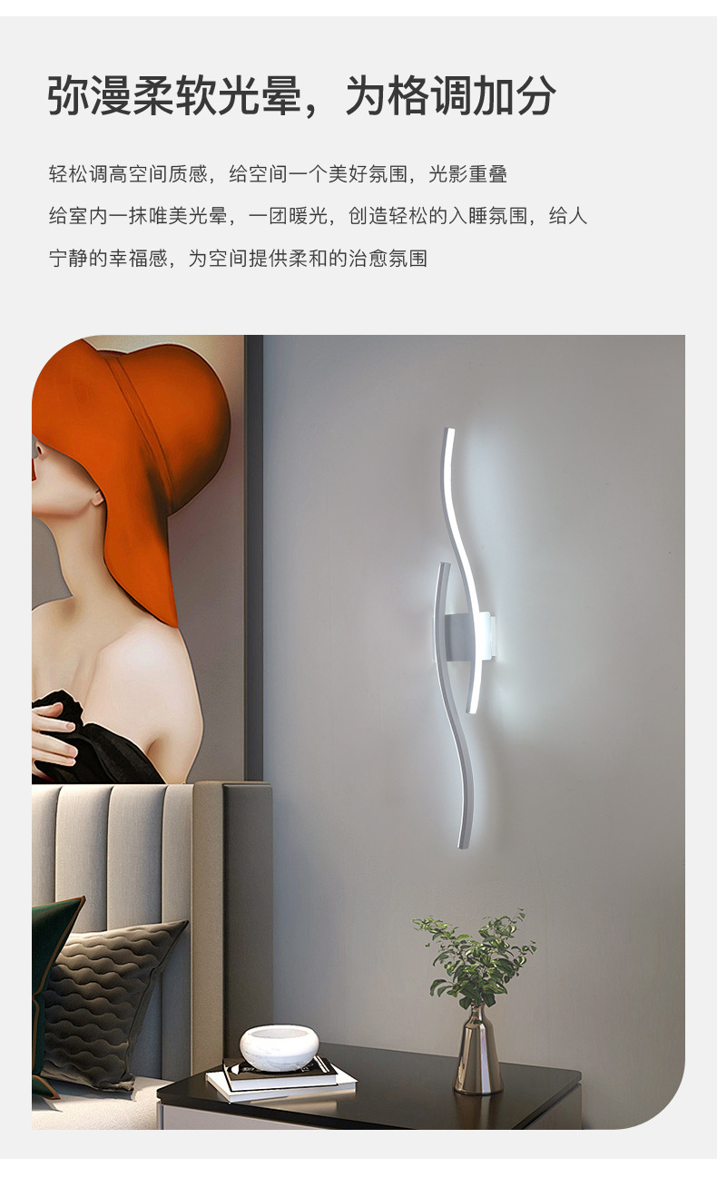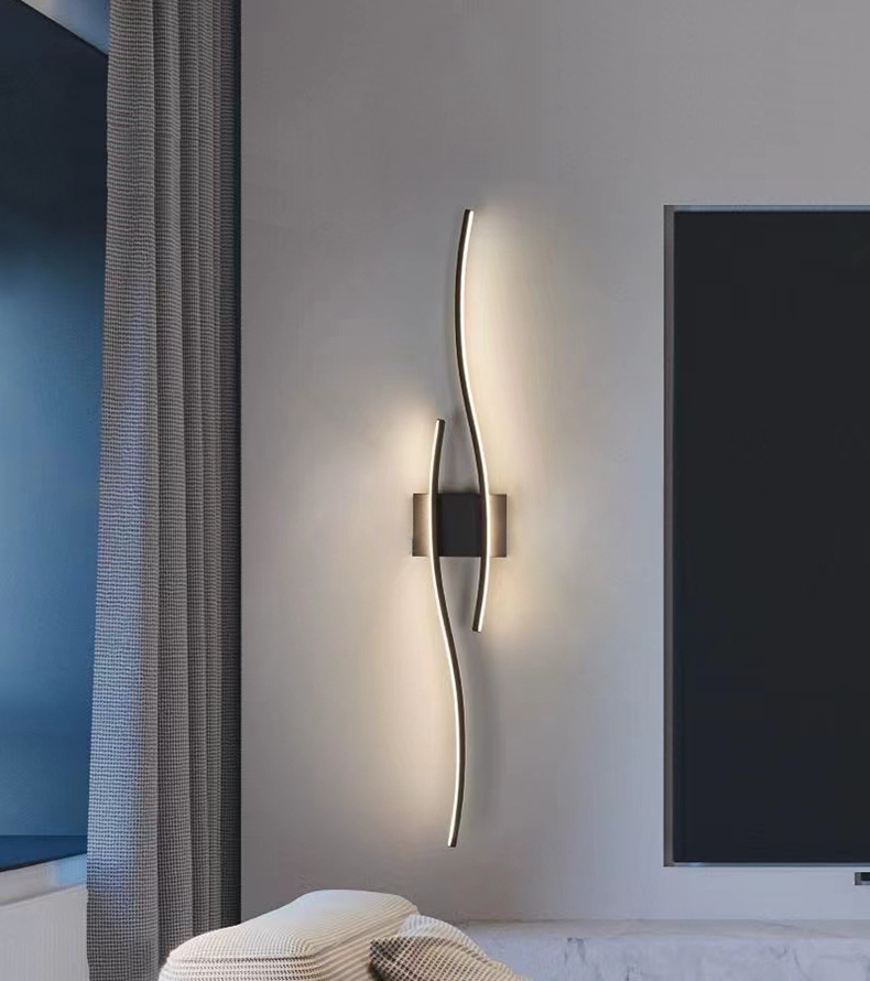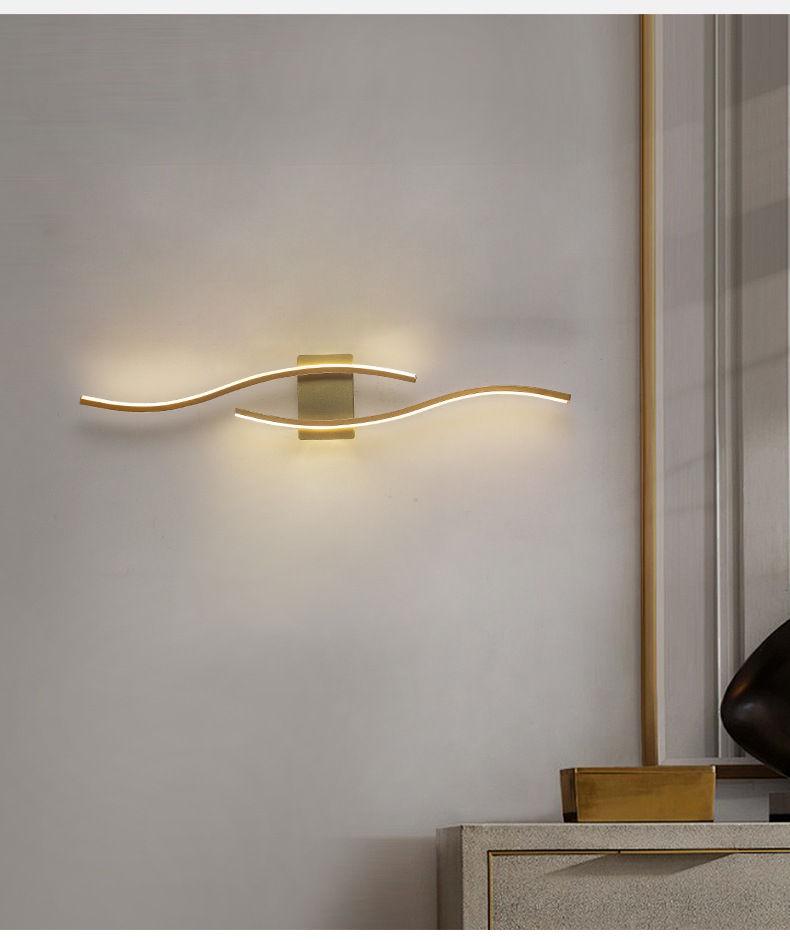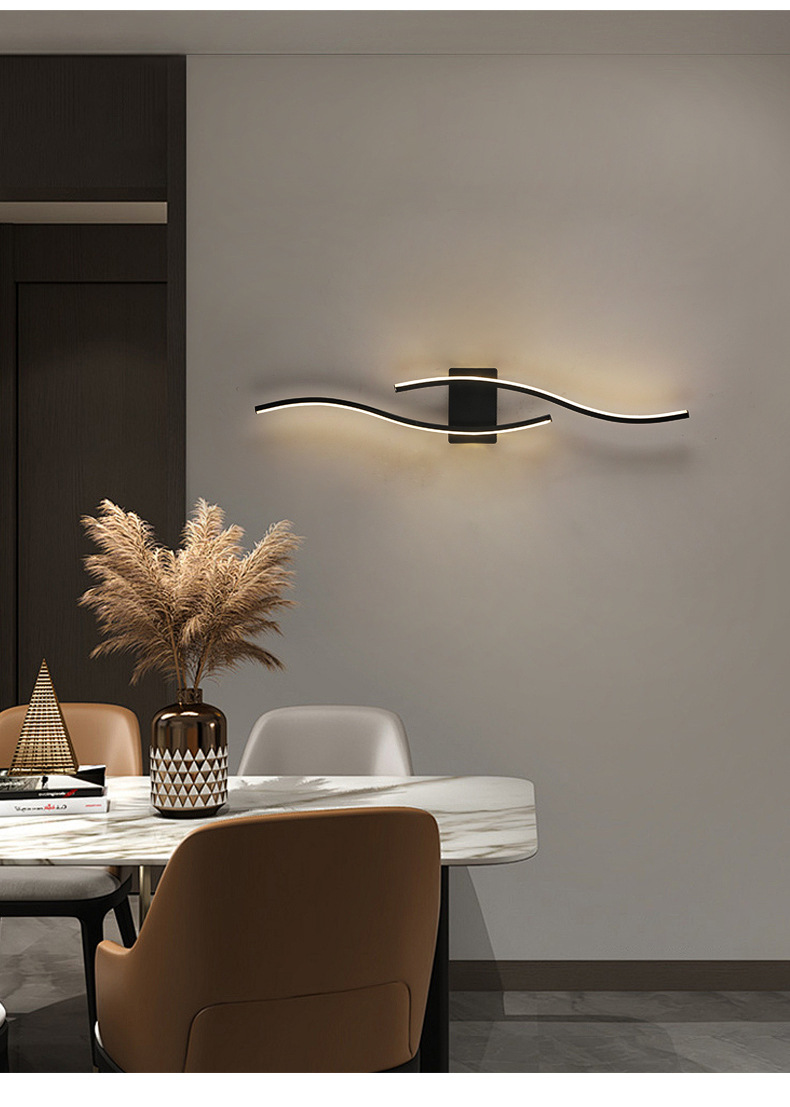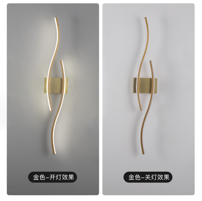 미니멀리스트 벽 램프 성격 현대 웨이브 벽 램프 거실 침실 배경 벽 장식 스트립 창조적 인 간단한 침대 옆 램프