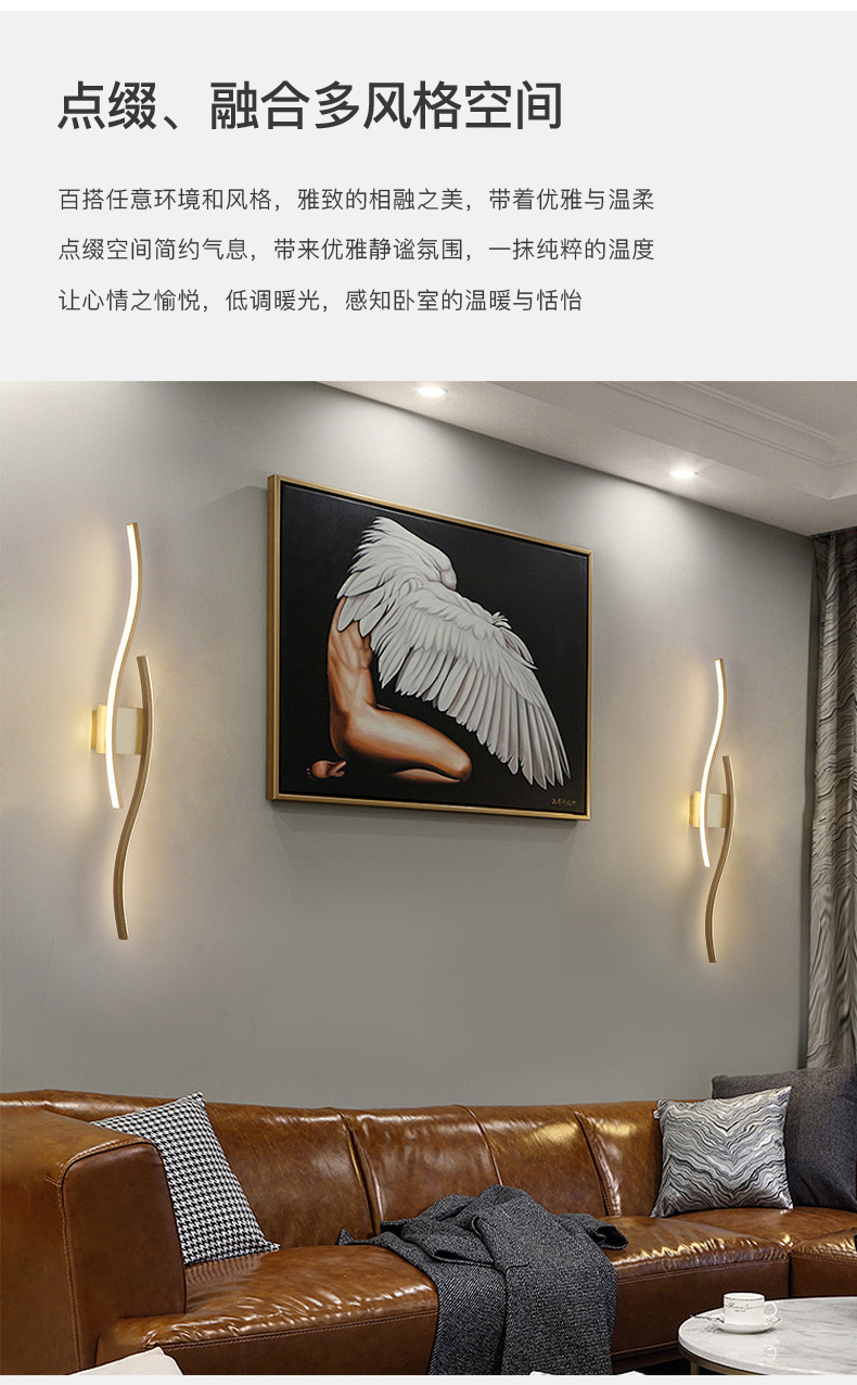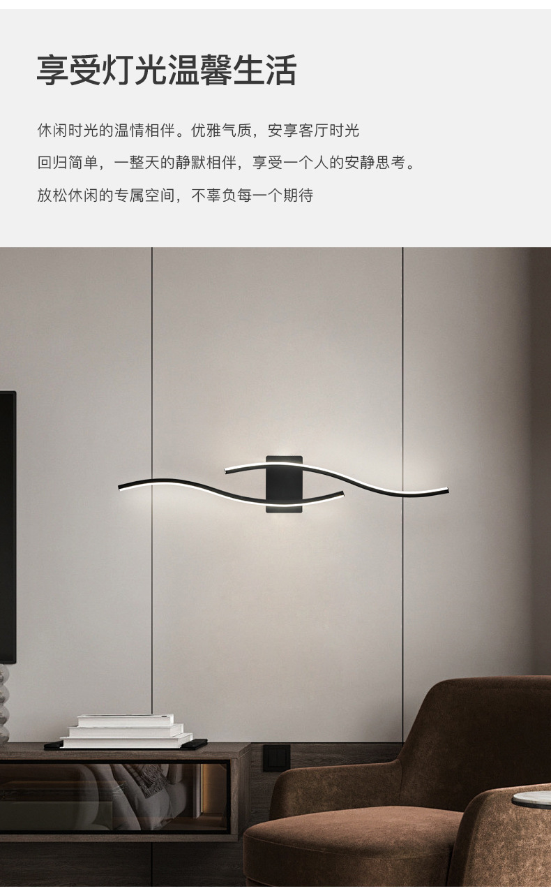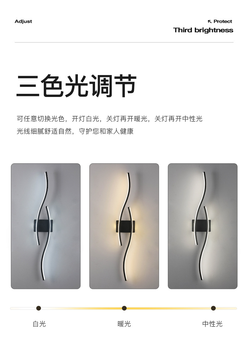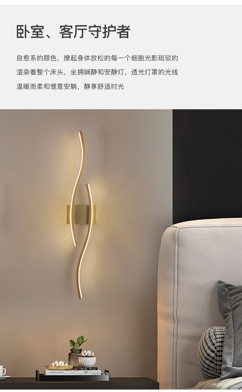 미니멀리스트 벽 램프 성격 현대 웨이브 벽 램프 거실 침실 배경 벽 장식 스트립 창조적 인 간단한 침대 옆 램프