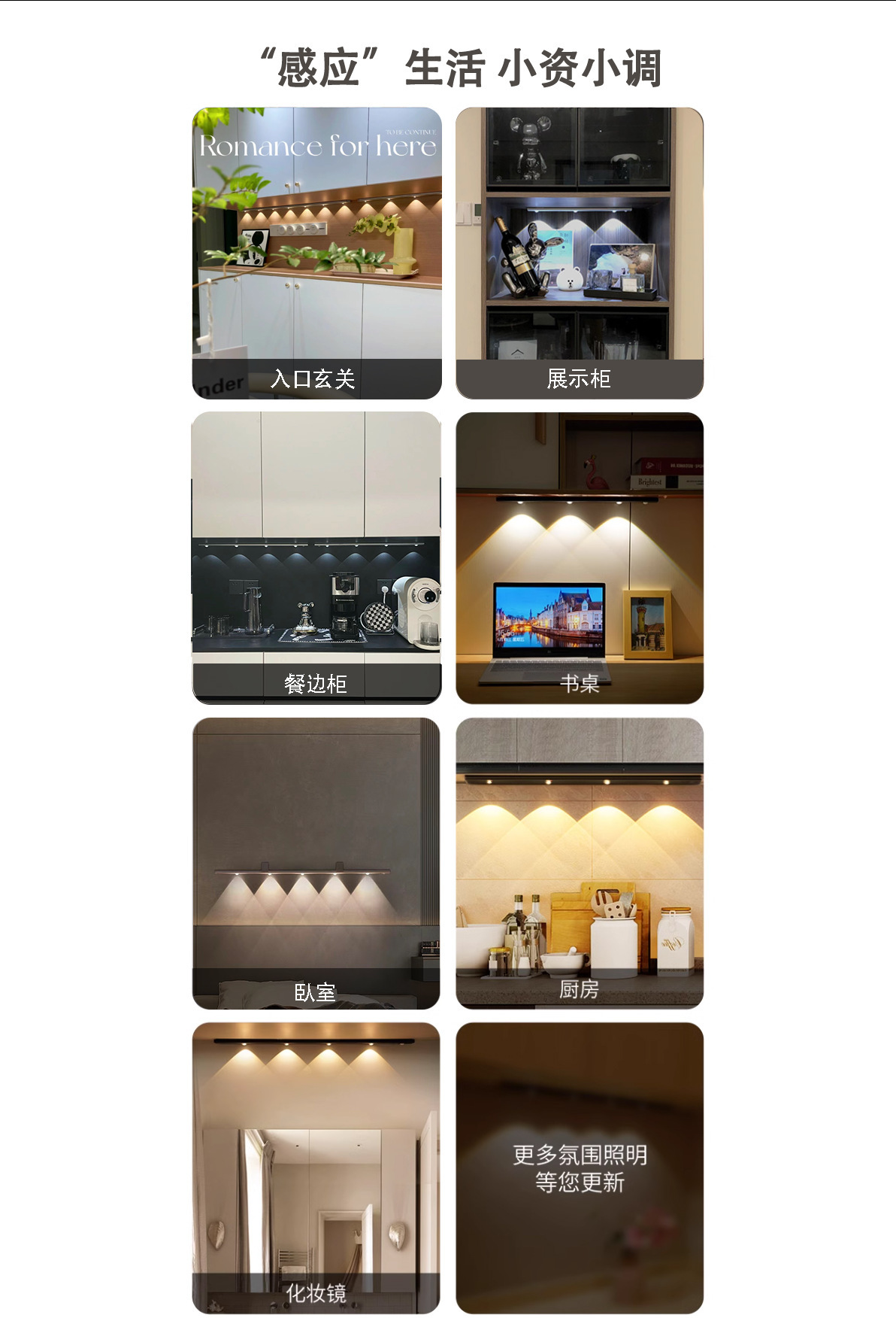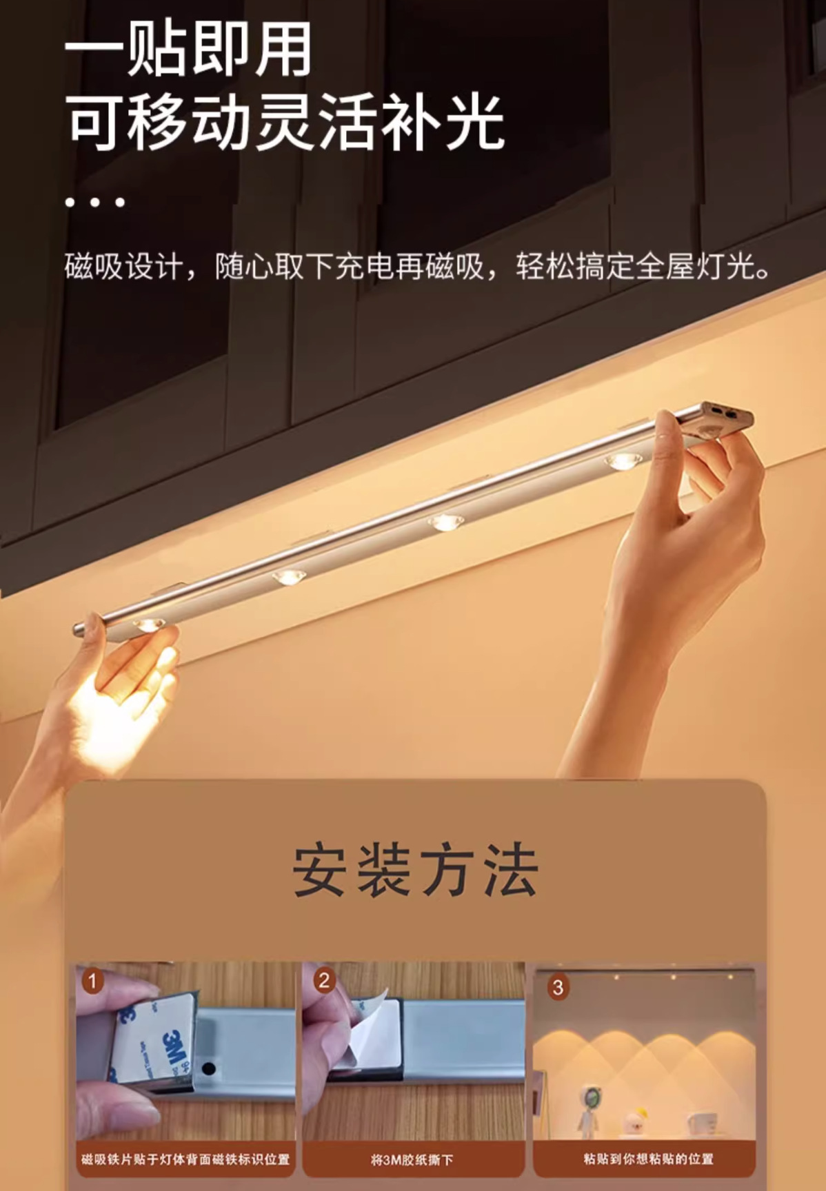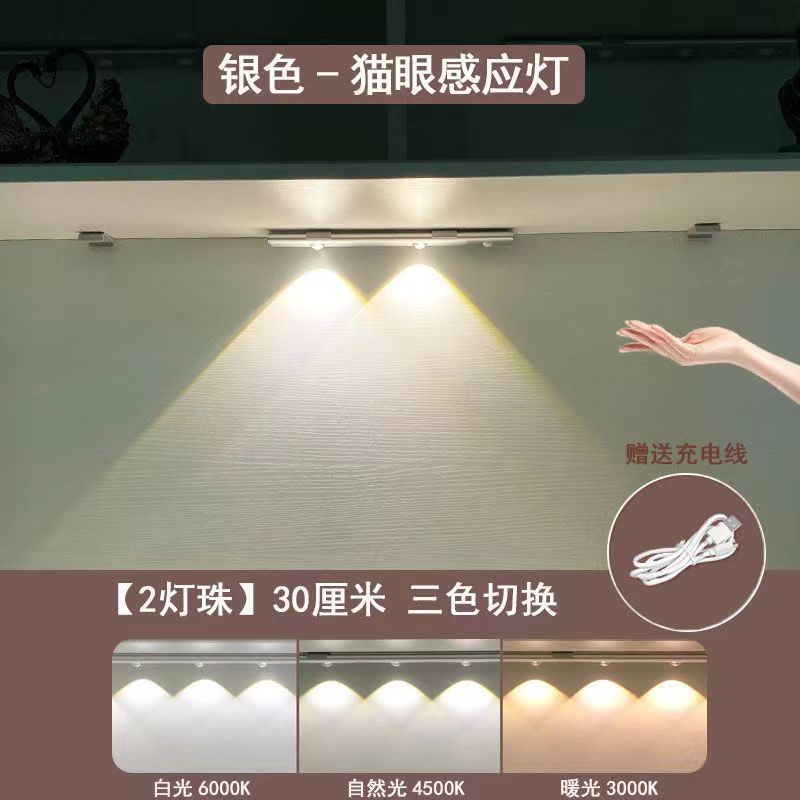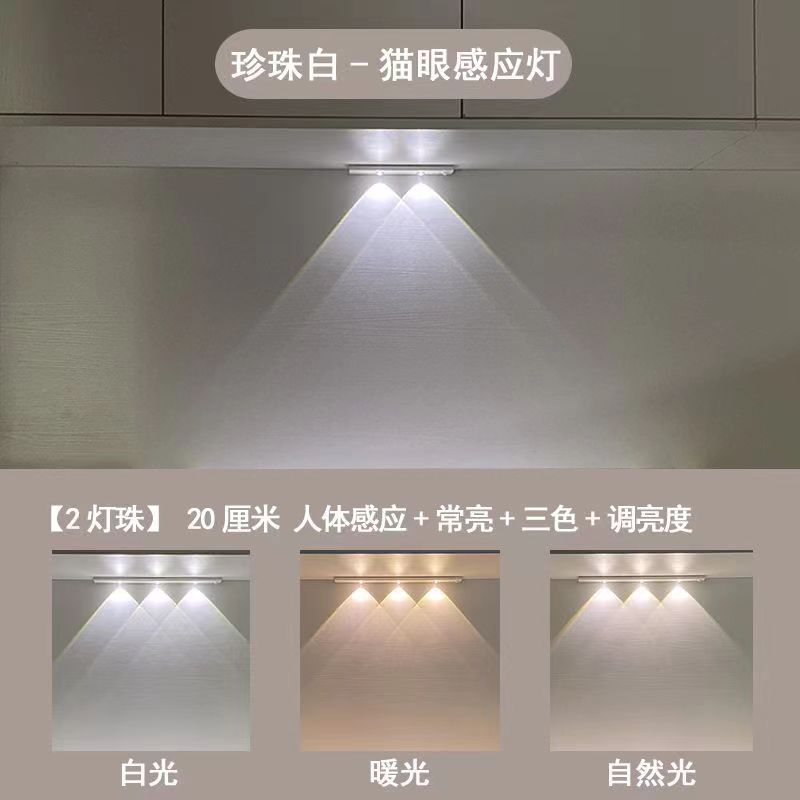 지능형 led 인체 센서 빛 초박형 고양이 눈 언덕 라이트 바 충전식 자체 접착 옷장 와인 캐비닛 캐비닛 라이트 스트립
