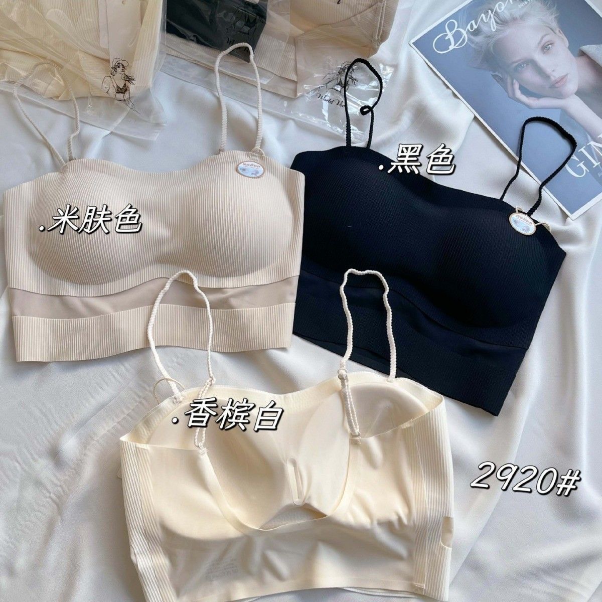 2920 # Hui Zhixin 구름 느낌 의류 얇은 어깨 끈 원활한 속옷 고정 컵 강철 반지 포장 가슴없이 수집