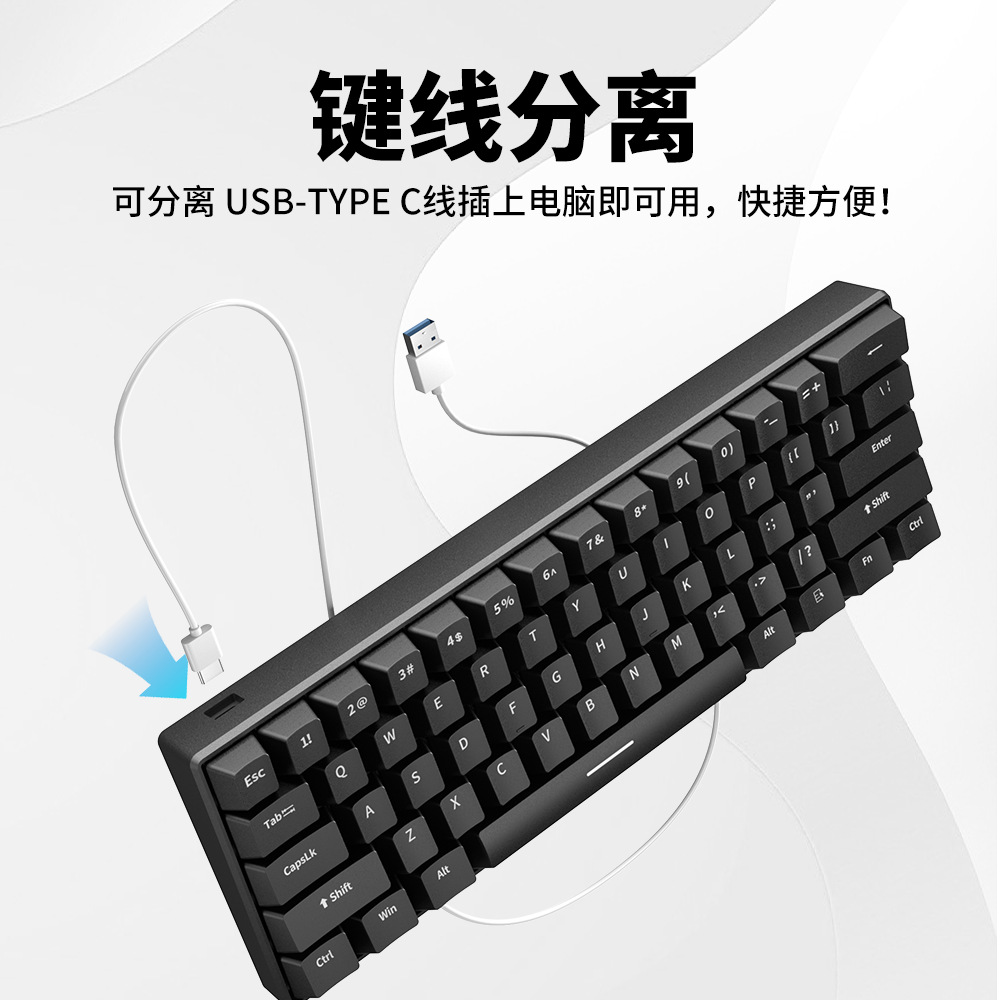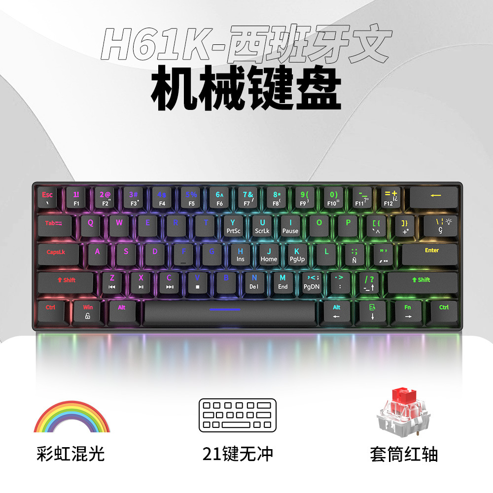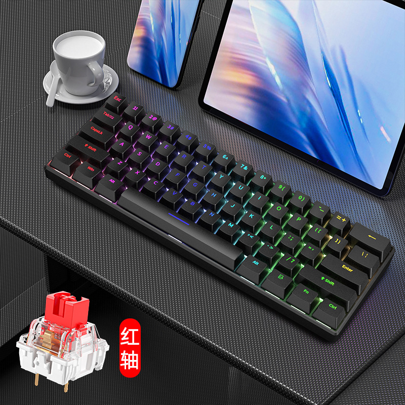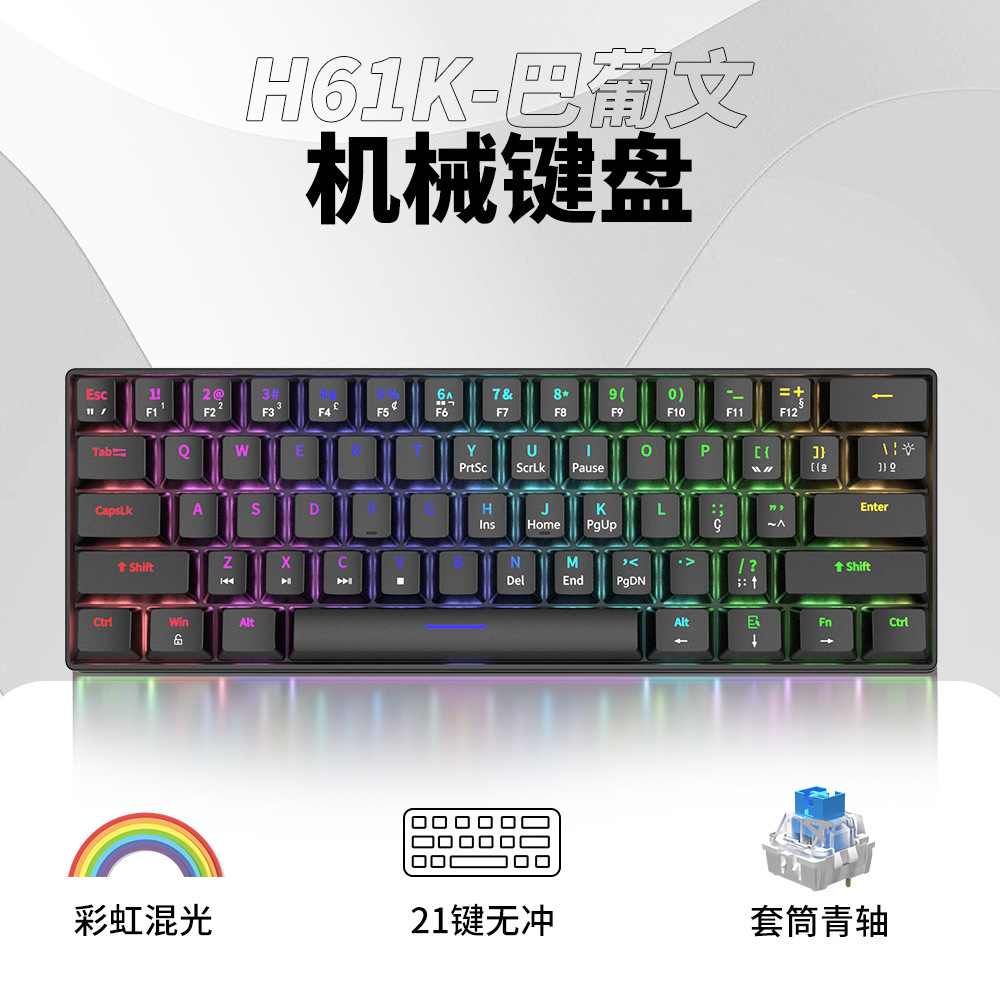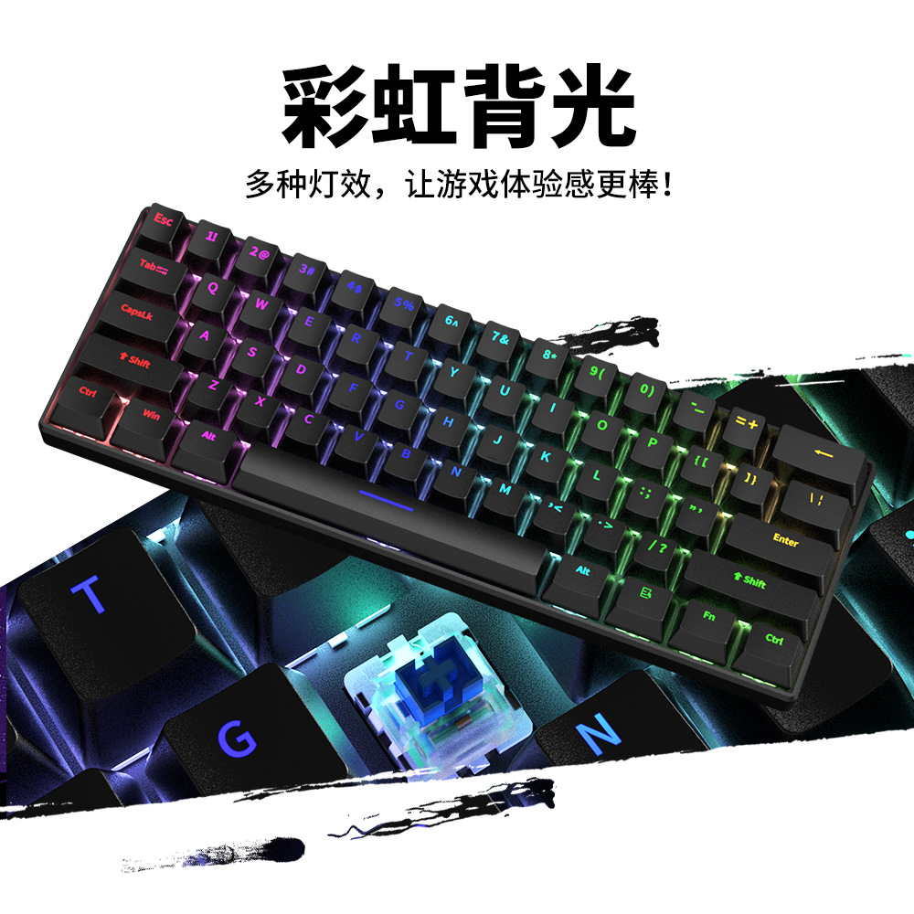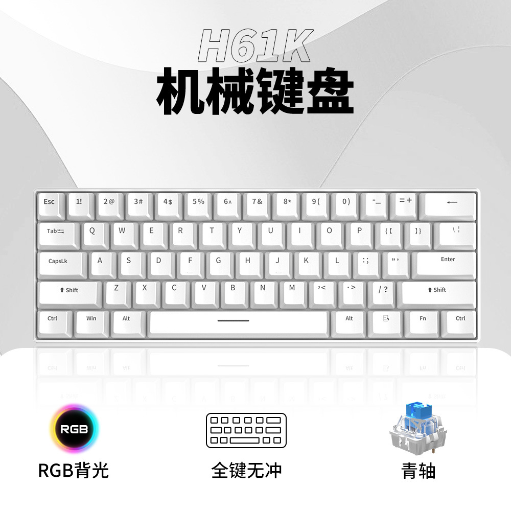 아마존 H61K 기계식 키보드 그린/티 블랙축 혼합 조명 노트북 유선 게이밍 소형 키보드 심플 디자인
