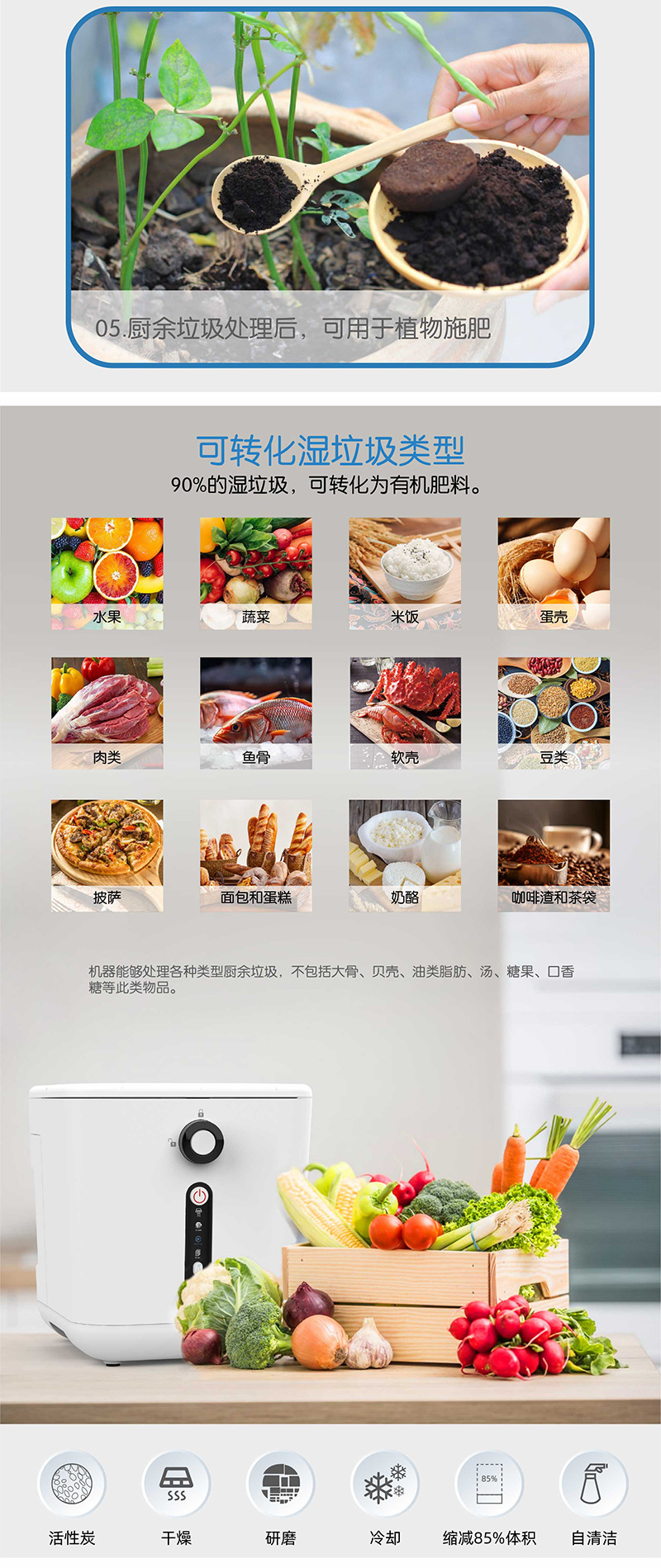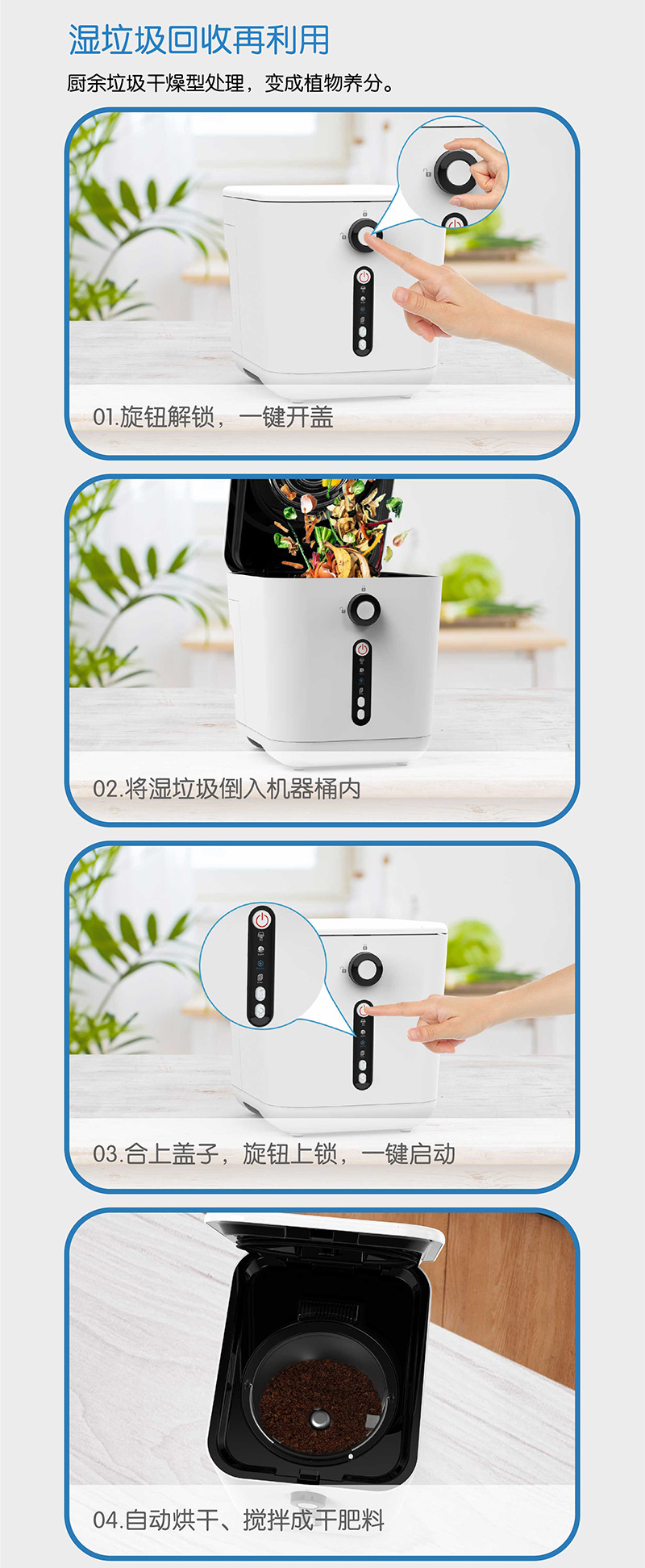 OEM/ODM 도매 사용자 정의 가정용 남은 음식물 쓰레기 처리기 건조 식품 퇴비화 기계