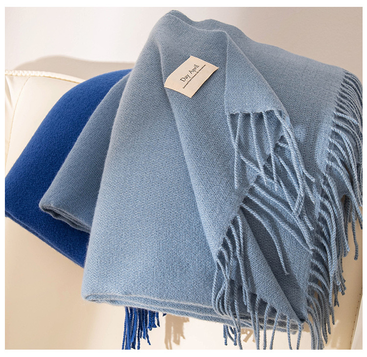 엄선된 한국 스타일의 분위기 있는 스카프, 캐시미어 느낌의 여성용 고급 겨울 따뜻한 다용도 가을 겨울 블루 숄 도매