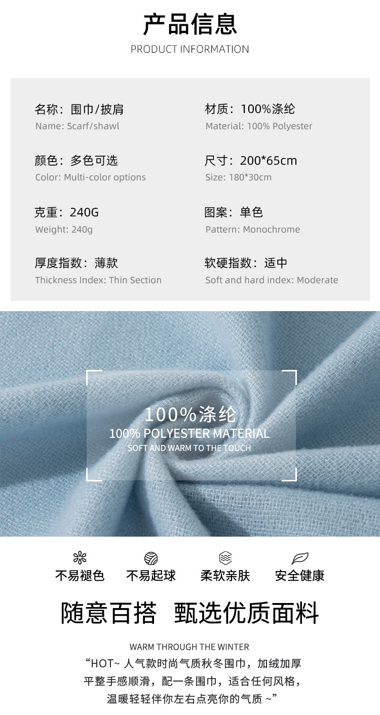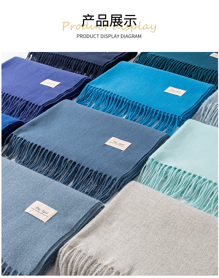 엄선된 한국 스타일의 분위기 있는 스카프, 캐시미어 느낌의 여성용 고급 겨울 따뜻한 다용도 가을 겨울 블루 숄 도매스토어 가기