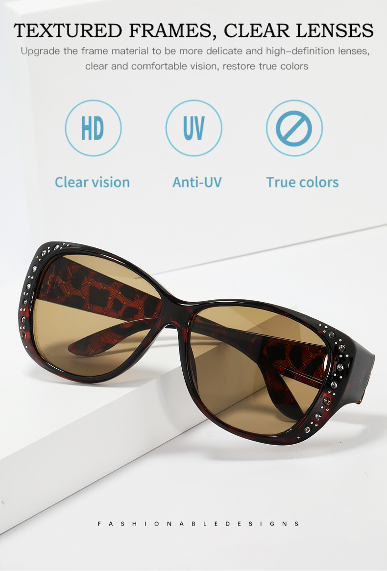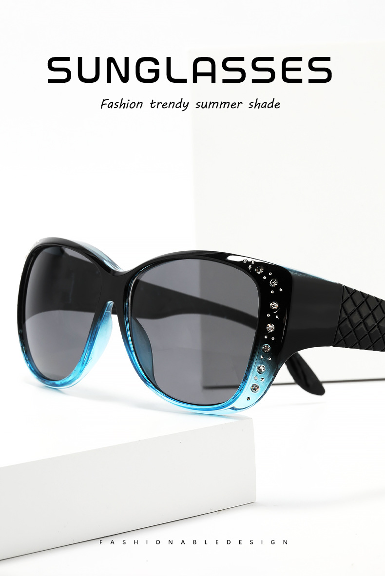 유럽과 미국의 새로운 스타일 선글라스, 복고풍 패셔너블한 다이아몬드가 박힌 여성용 선글라스, 큰 얼굴을 위한 트렌디한 슬리밍 안경테, 편광 렌즈스토어 가기