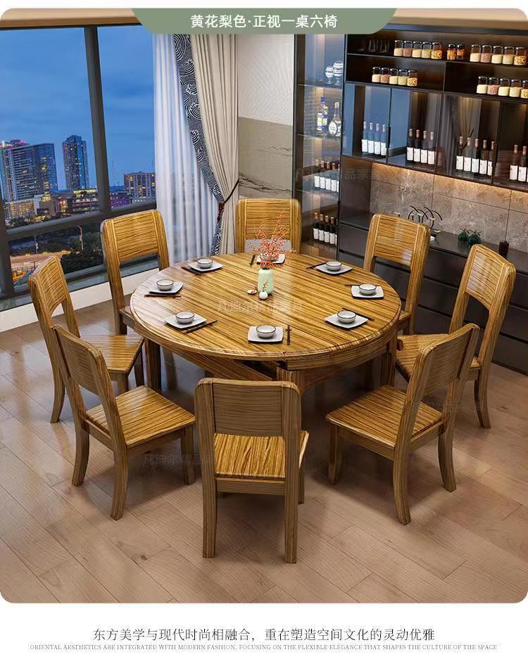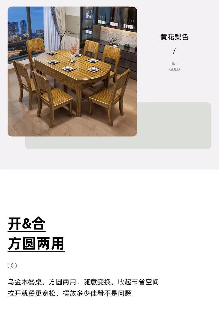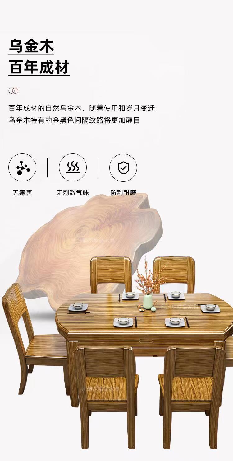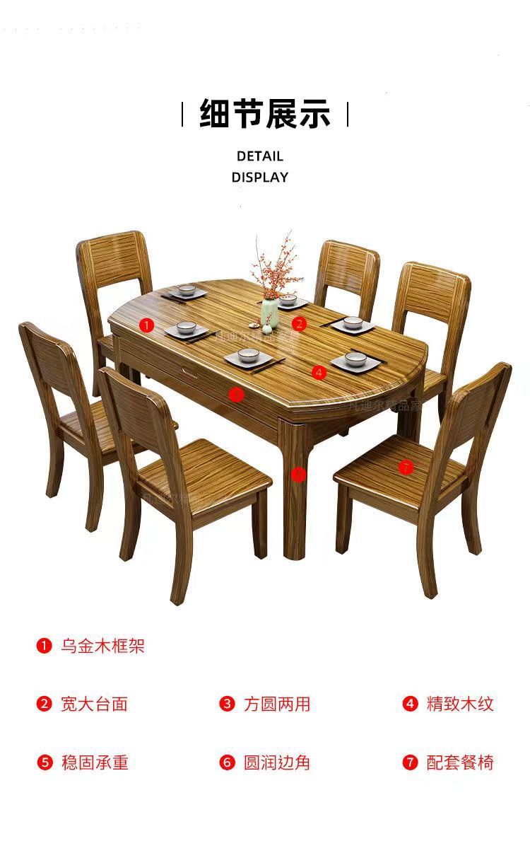 Ebony 솔리드 우드 다이닝 테이블 및 의자 조합 1.35 m 라운드 테이블 접이식 1.5 m 대형 식탁 1.2 테이블스토어 가기