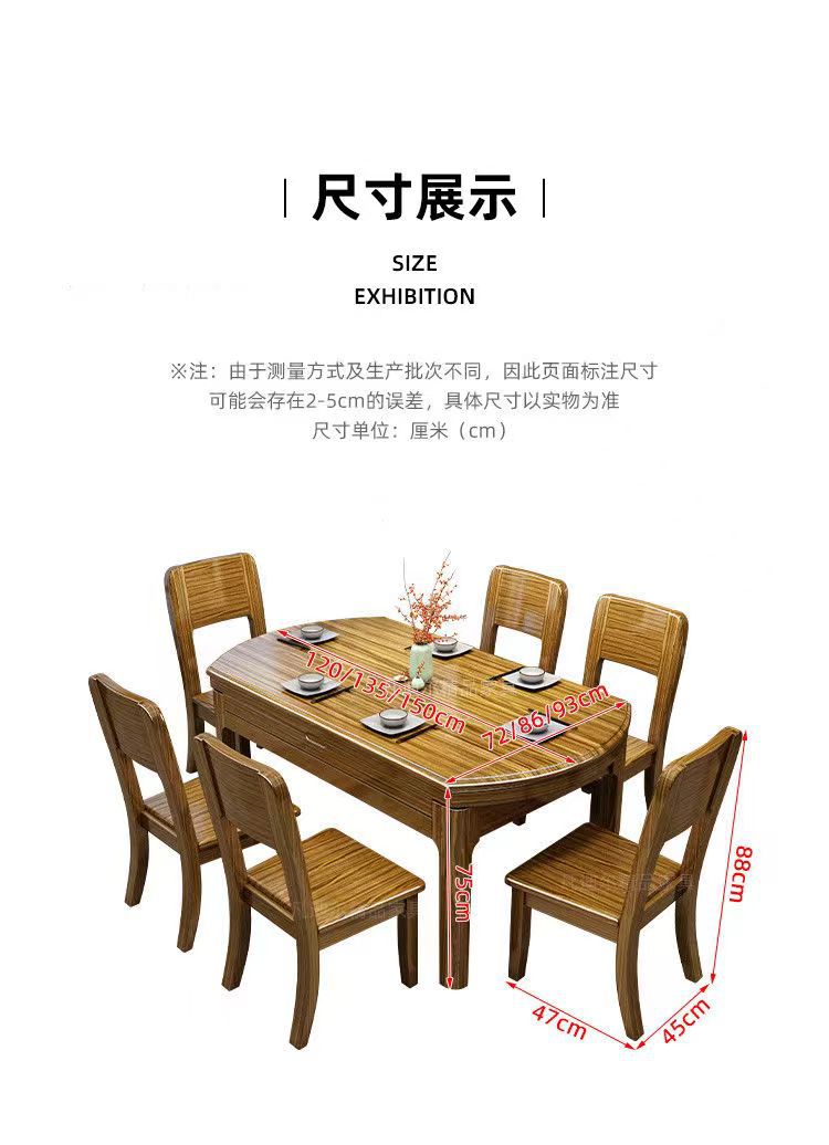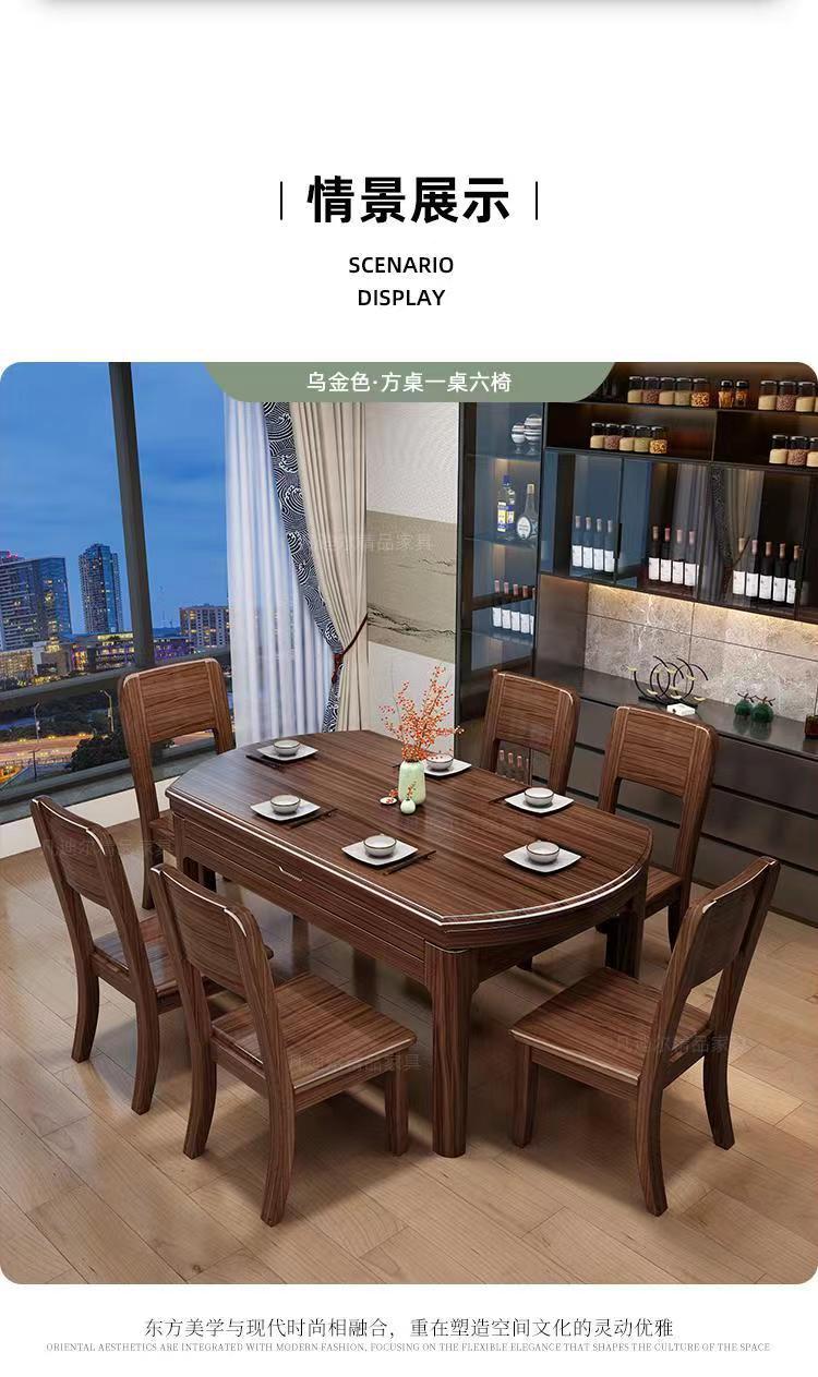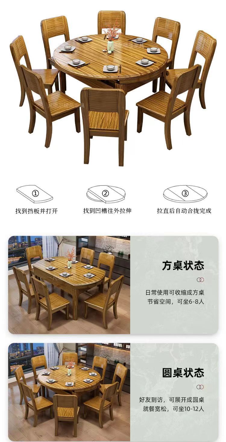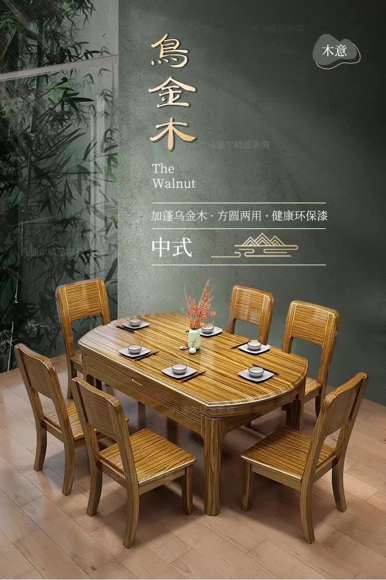 Ebony 솔리드 우드 다이닝 테이블 및 의자 조합 1.35 m 라운드 테이블 접이식 1.5 m 대형 식탁 1.2 테이블스토어 가기