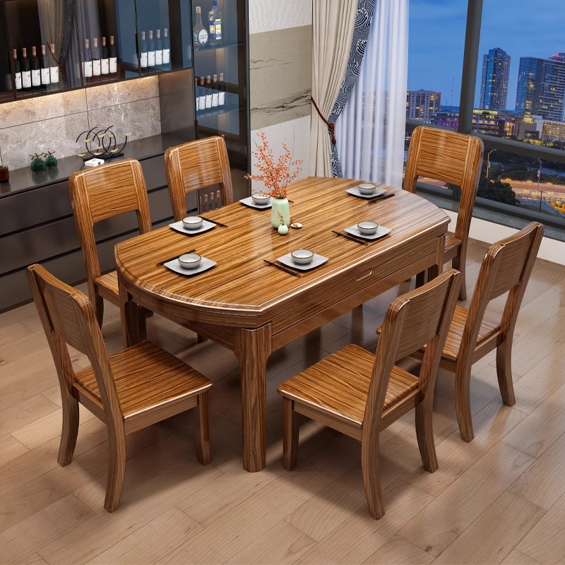 Ebony 솔리드 우드 다이닝 테이블 및 의자 조합 1.35 m 라운드 테이블 접이식 1.5 m 대형 식탁 1.2 테이블