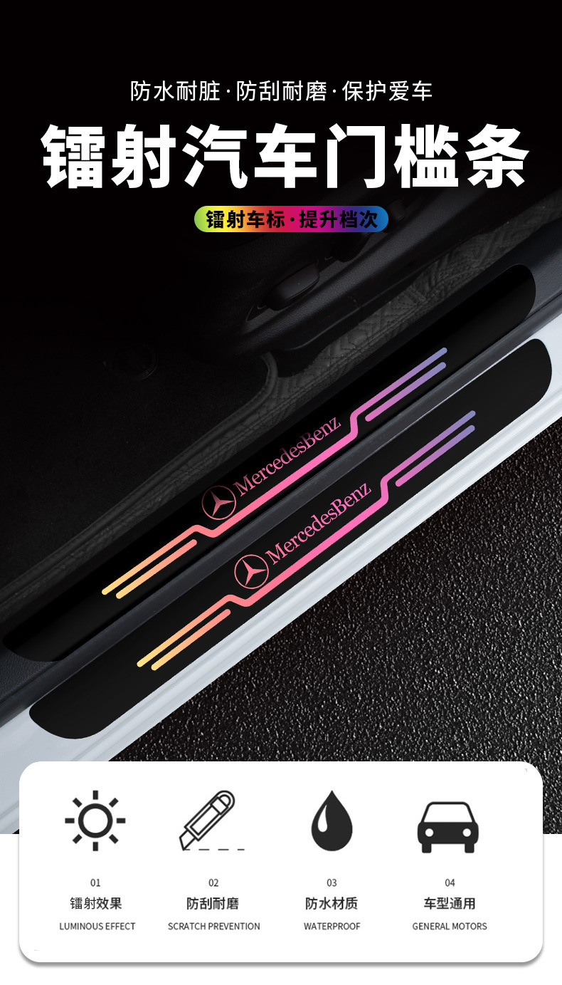 자동차 다채로운 레이저 문턱 스트립 안티 스테핑 보호 스티커 자동차 도어 페달 보호 스티커 자동차 장식 안티 스크래치 스트립