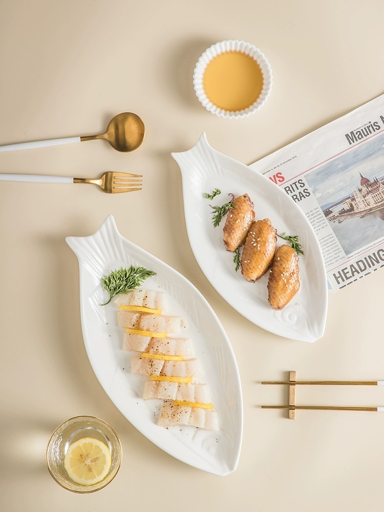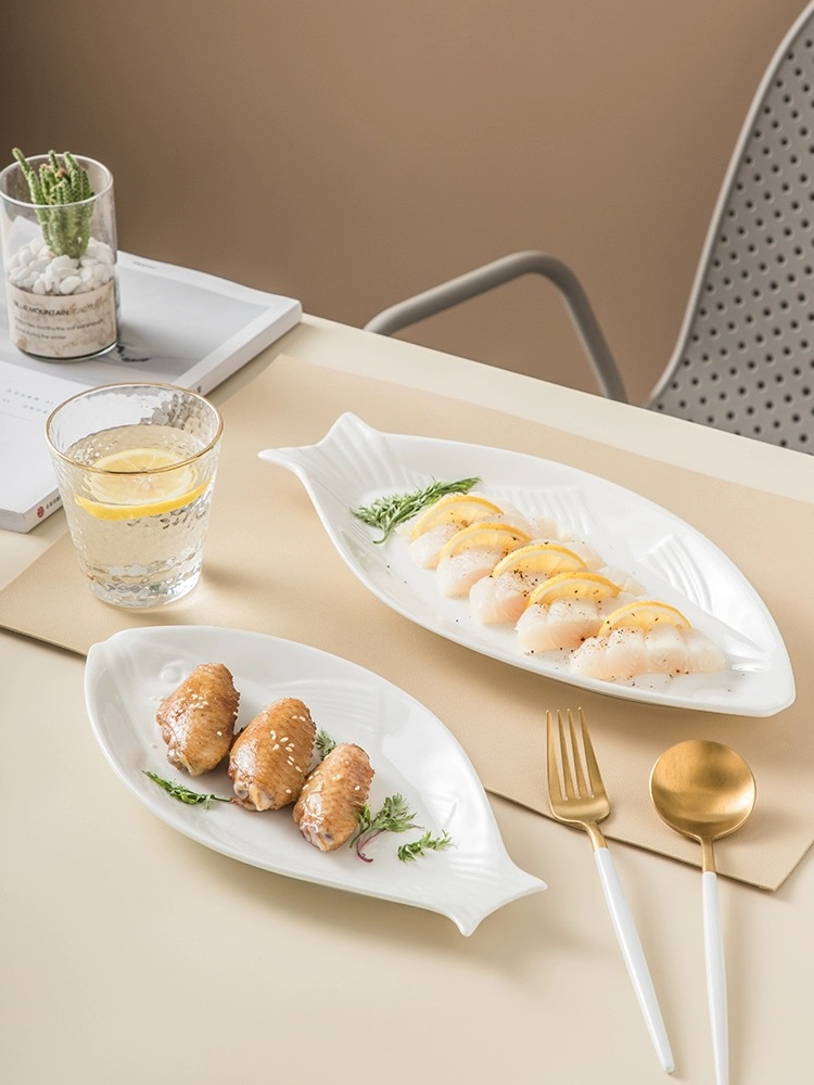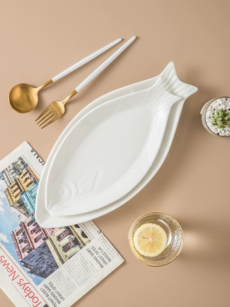 세라믹 물고기 모양의 접시 레스토랑 창조적 인 생선 접시 개인화 된 상업 레스토랑 그물 붉은 찐 생선 접시 호텔 세라믹 식기 도매스토어 가기