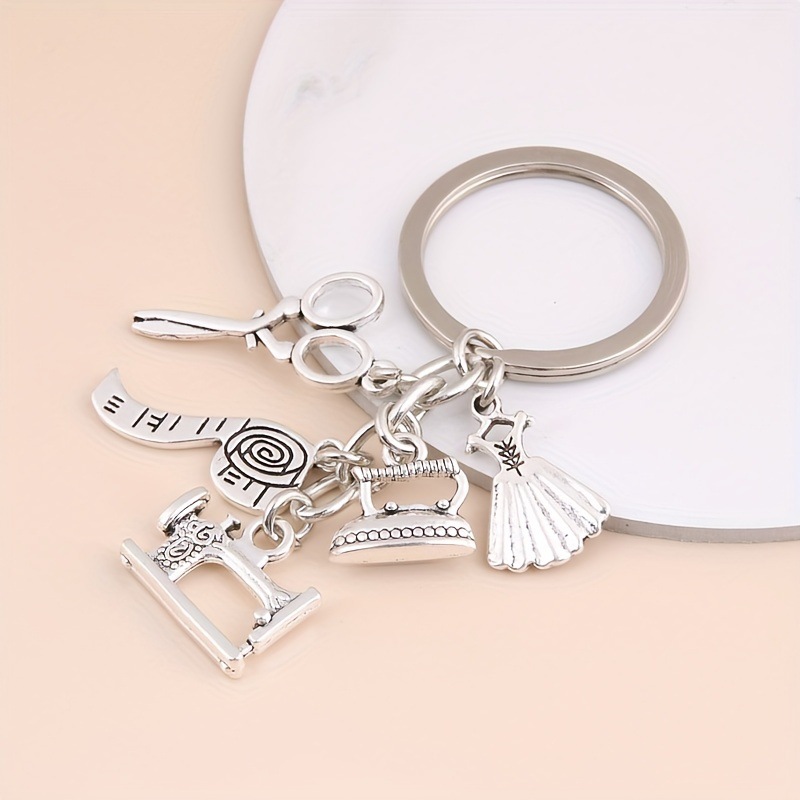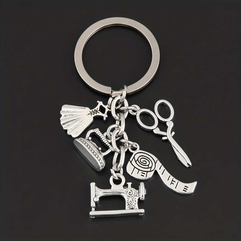 실용적인 철 테이프 측정 및 가위 액세서리 완벽한 정통 재봉틀 키 체인 패션 키 링