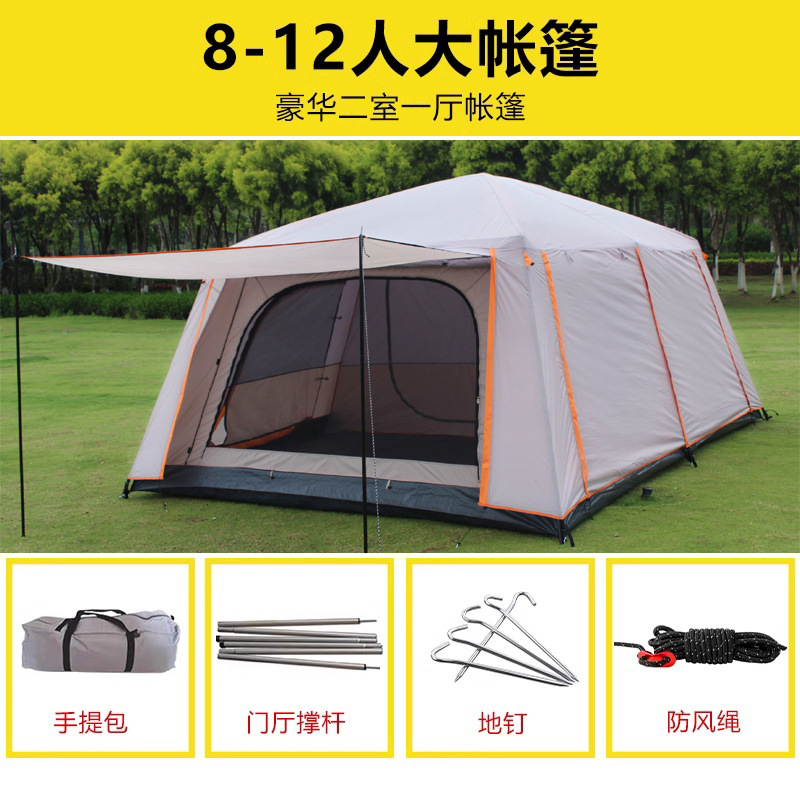 2 방 1 홀 텐트 폭풍우 방지 모든 것을 포함하는 캠핑 더블 레이어 두꺼운 방수 선 스크린 휴대용 캠핑 하룻밤 텐트