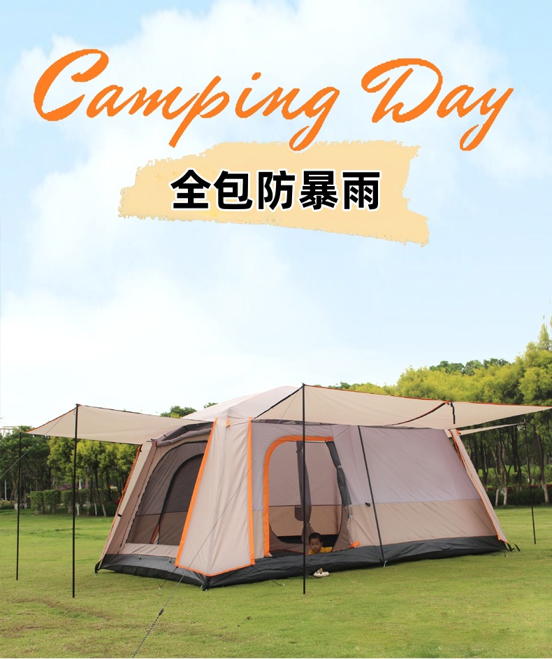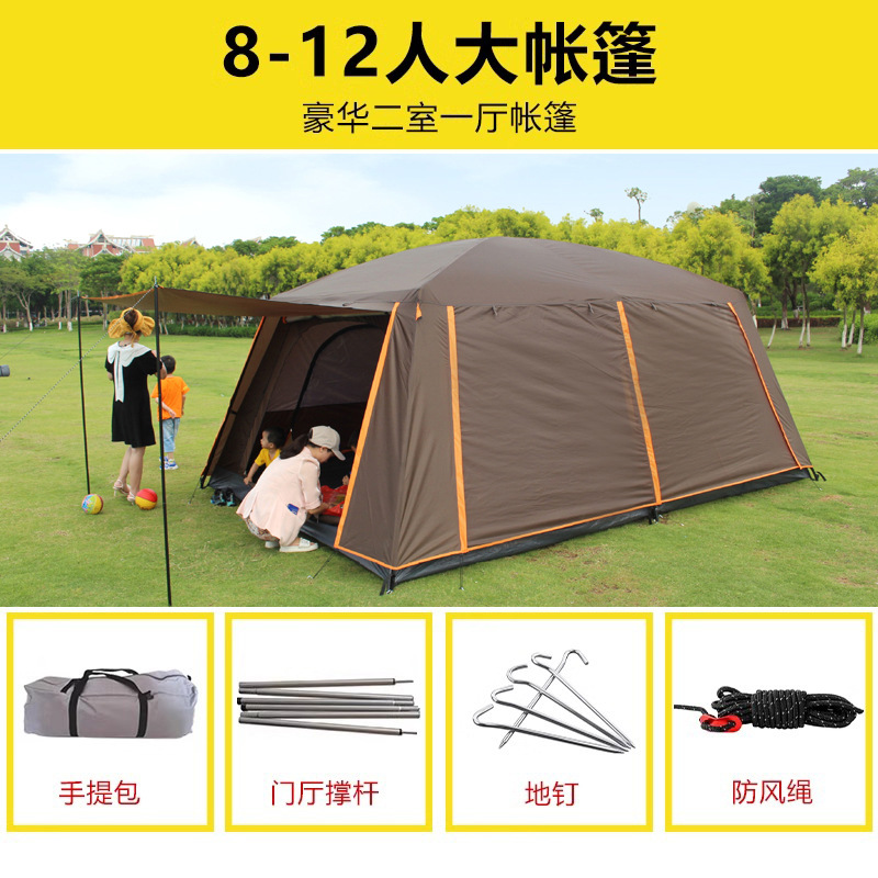 2 방 1 홀 텐트 폭풍우 방지 모든 것을 포함하는 캠핑 더블 레이어 두꺼운 방수 선 스크린 휴대용 캠핑 하룻밤 텐트스토어 가기