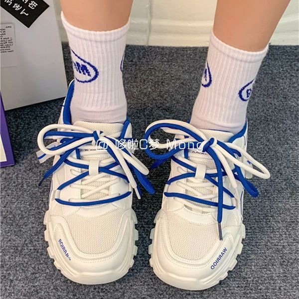 부드러운 가죽 메쉬 토레 신발 여성 신발 2024 봄과 여름 새로운 캐주얼 스포츠 화이트 신발 폭발 두꺼운 단독 신발의 트렌디 신발스토어 가기