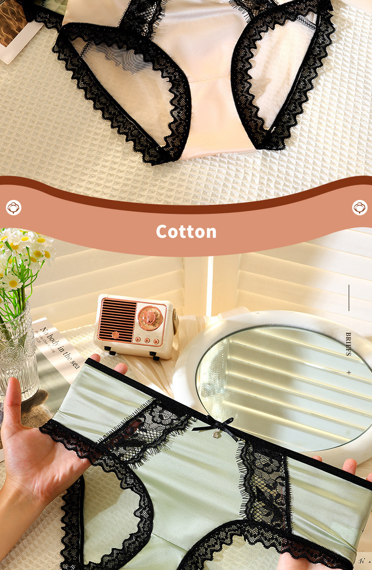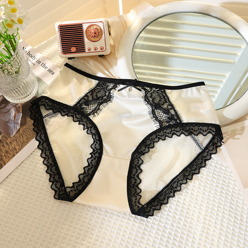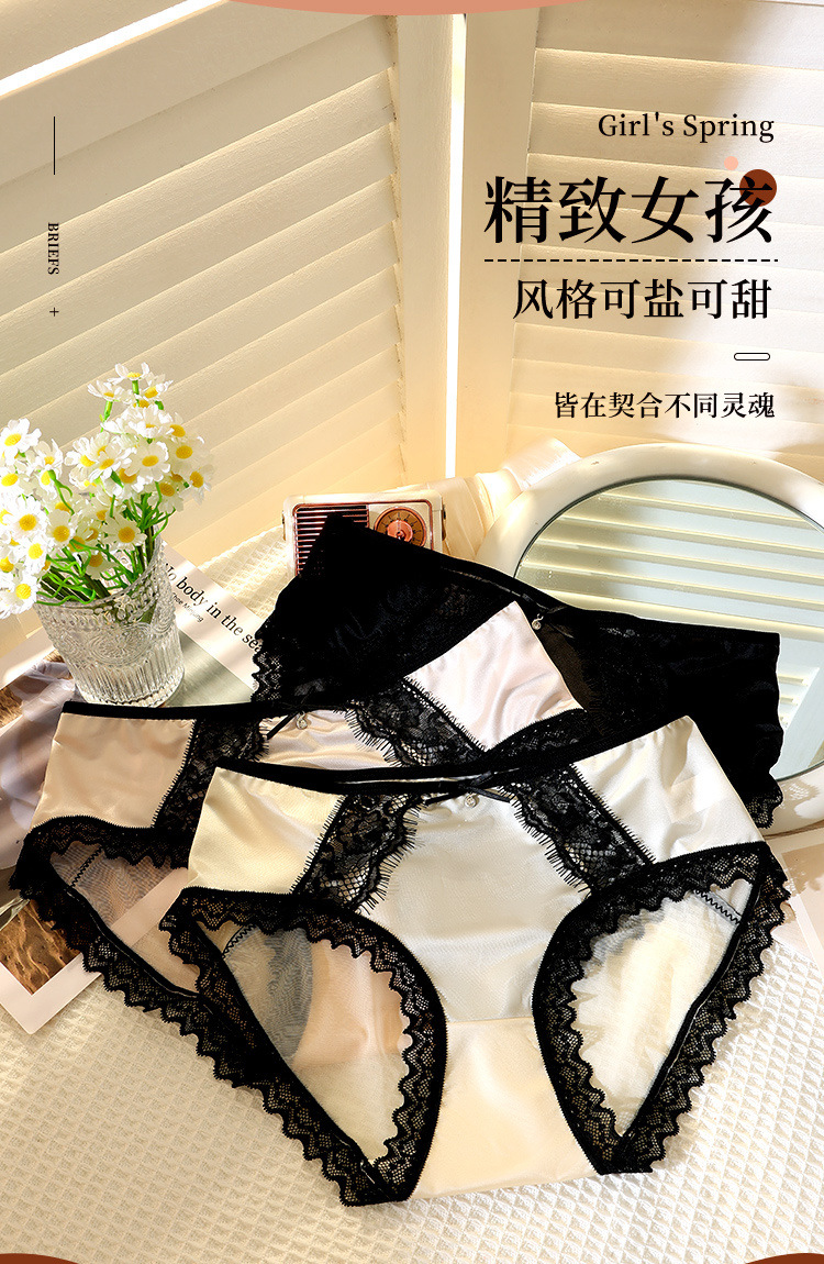 프랑스 스타일 섹시한 레이스 라이트 럭셔리 새틴 속옷 통기성 멀 베리 실크 바닥 크로치 글로서 미드 허리 여성 브리프스토어 가기