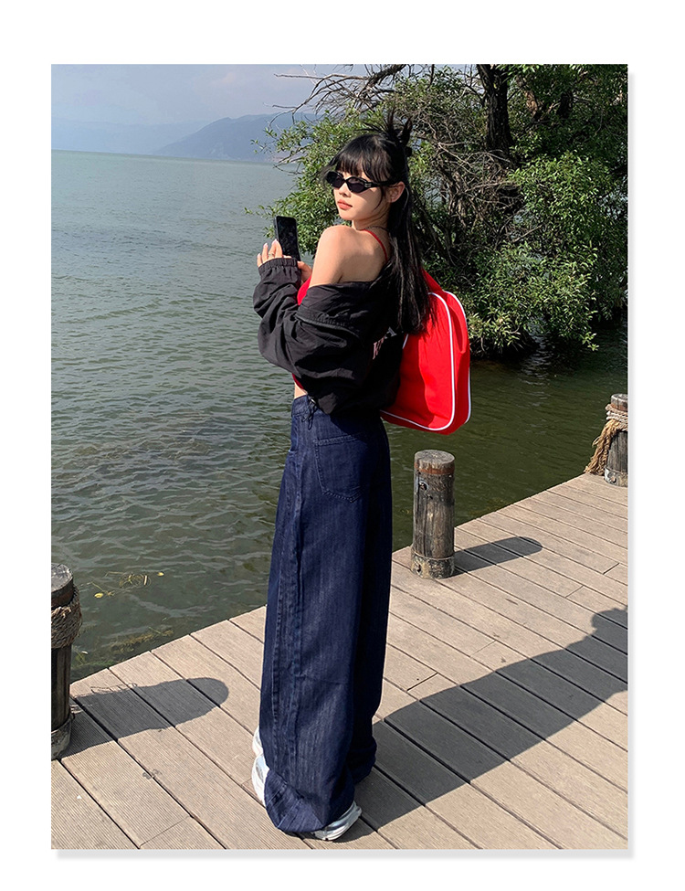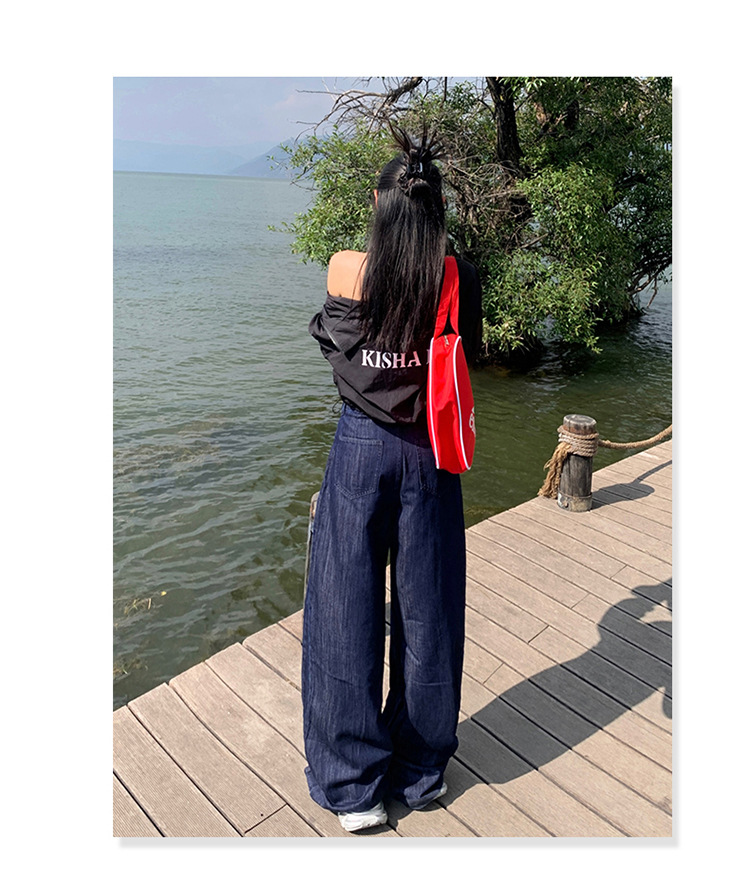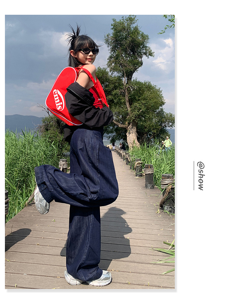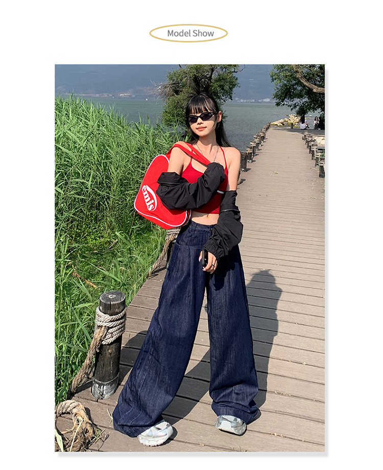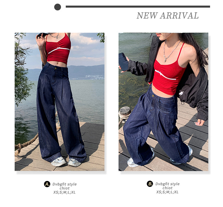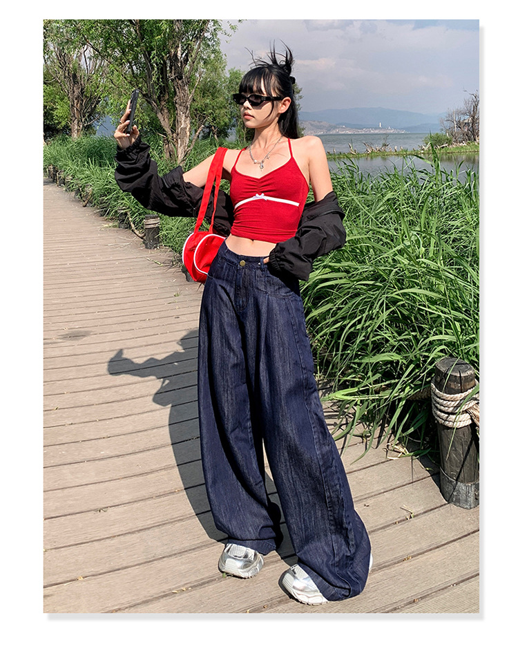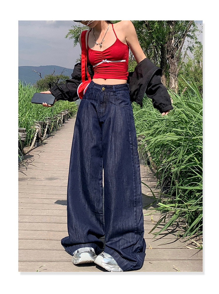 아메리칸 빈티지 다크 블루 텐셀 청바지 여성용 여름 루즈 좁은 와이드 레그 팬츠 딥 아이스 실크 스트레이트 팬츠스토어 가기