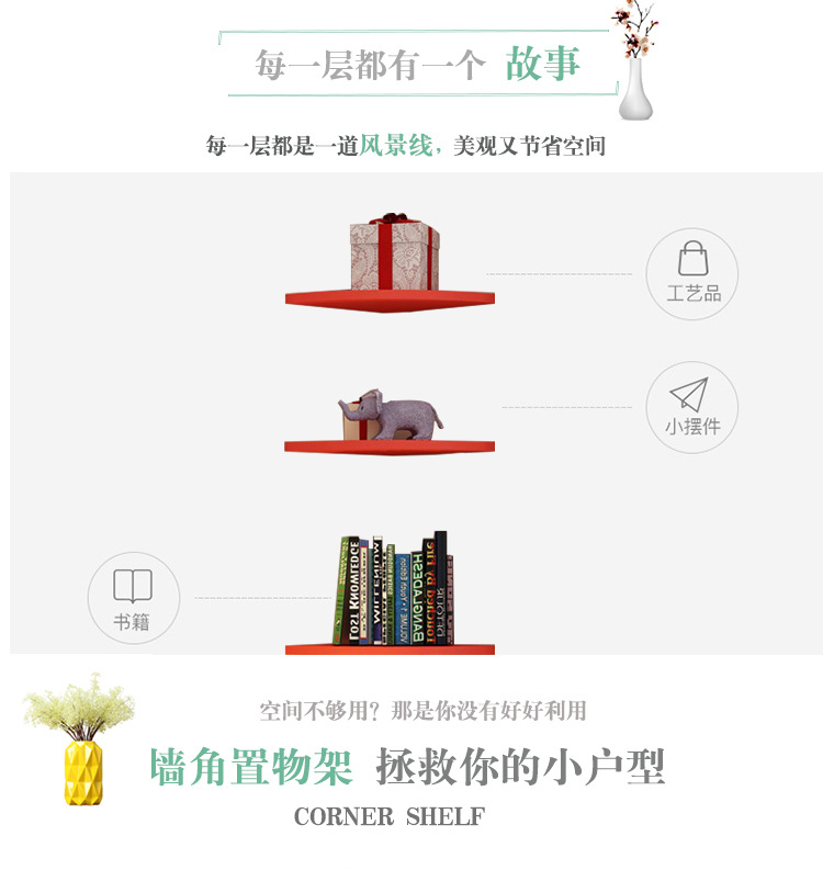 코너 선반 침실 장식 비 천공 파티션 벽 삼각형 책장 벽 팬 모양의 주방 벽 교수형 신제품스토어 가기