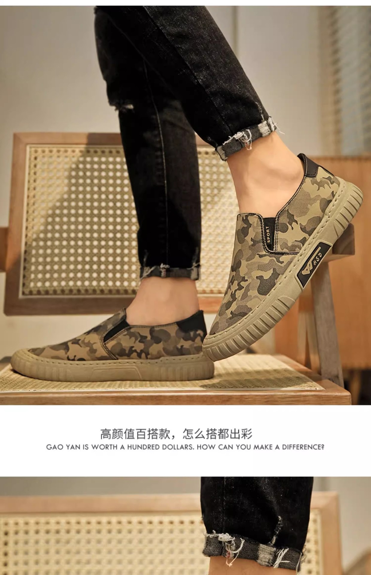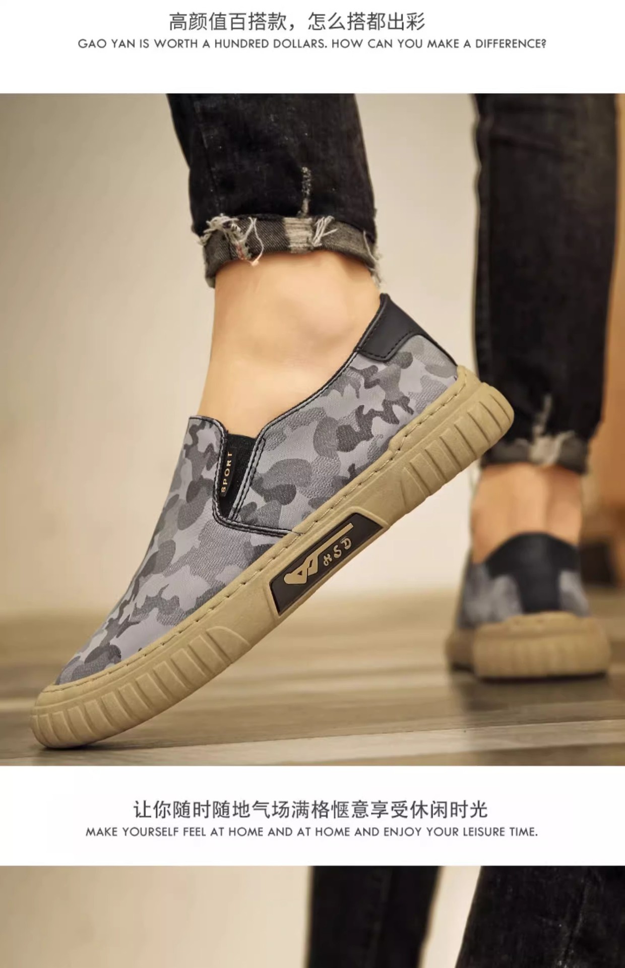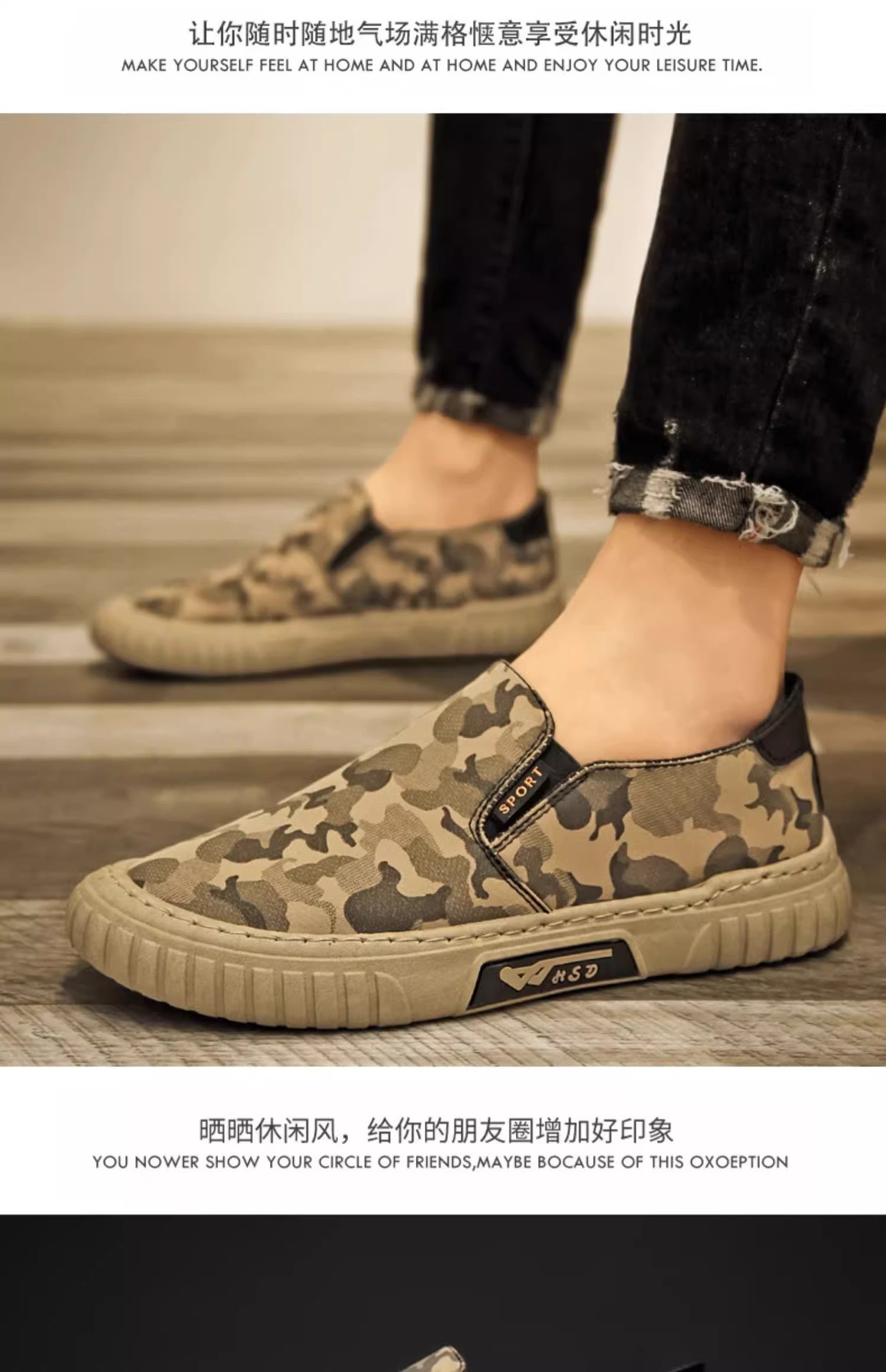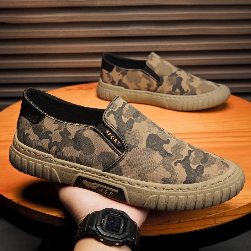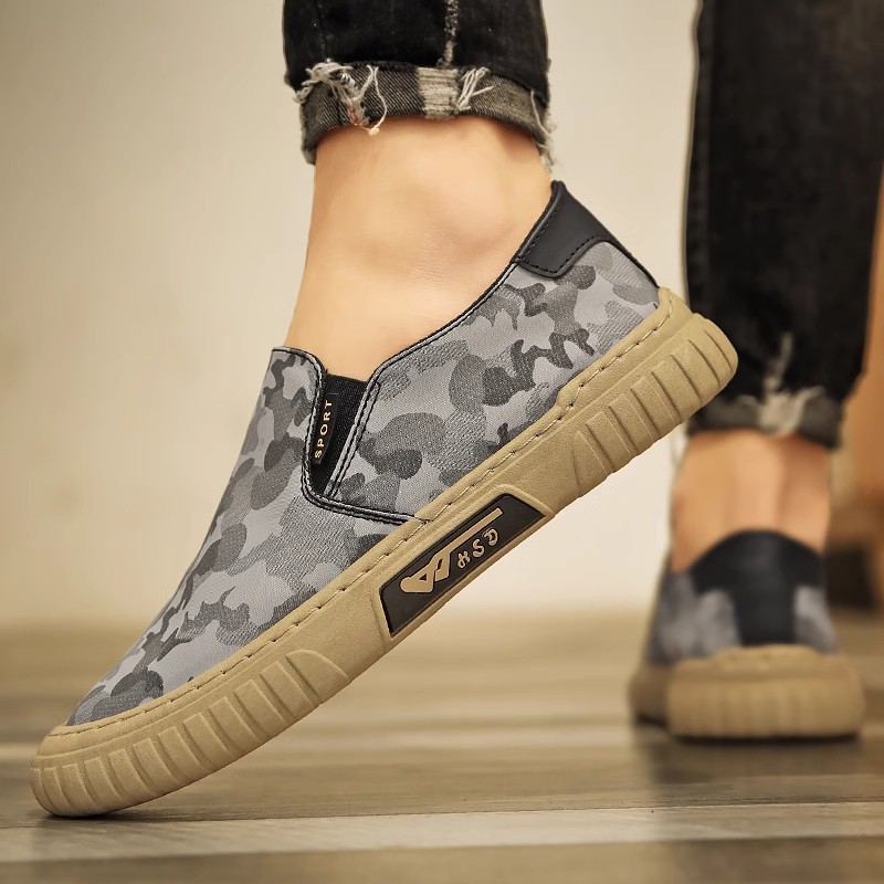 위장 캔버스 남성 신발 여름 새로운 패션 통기성 야외 스포츠 캐주얼 신발 슬립 온 남성 트렌디 남성 신발스토어 가기
