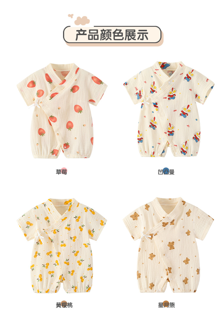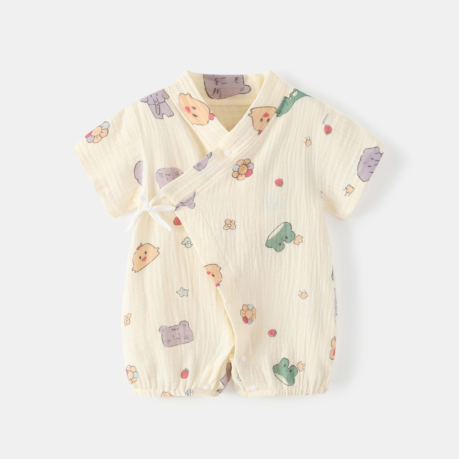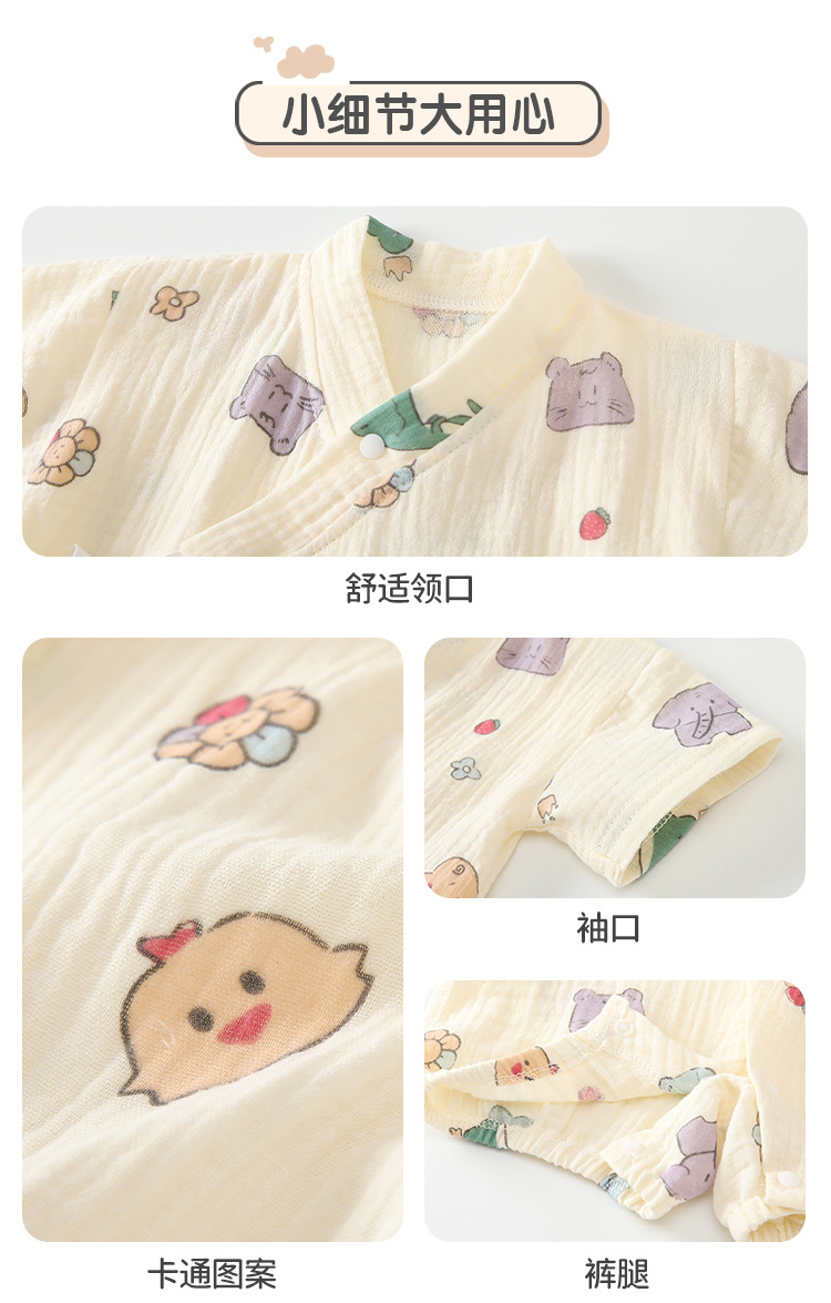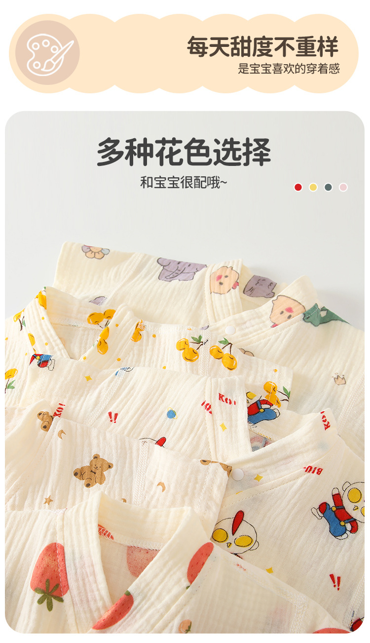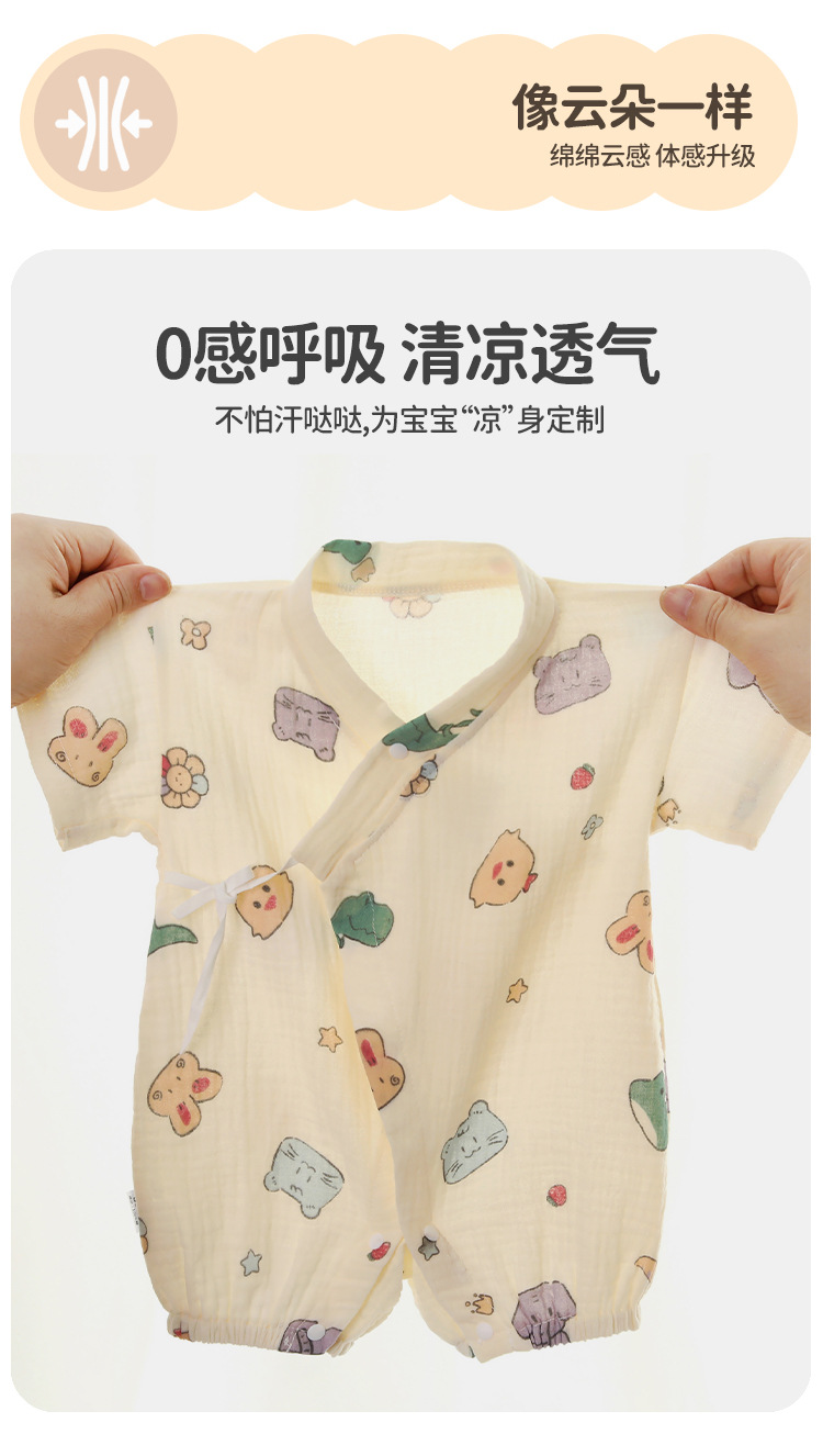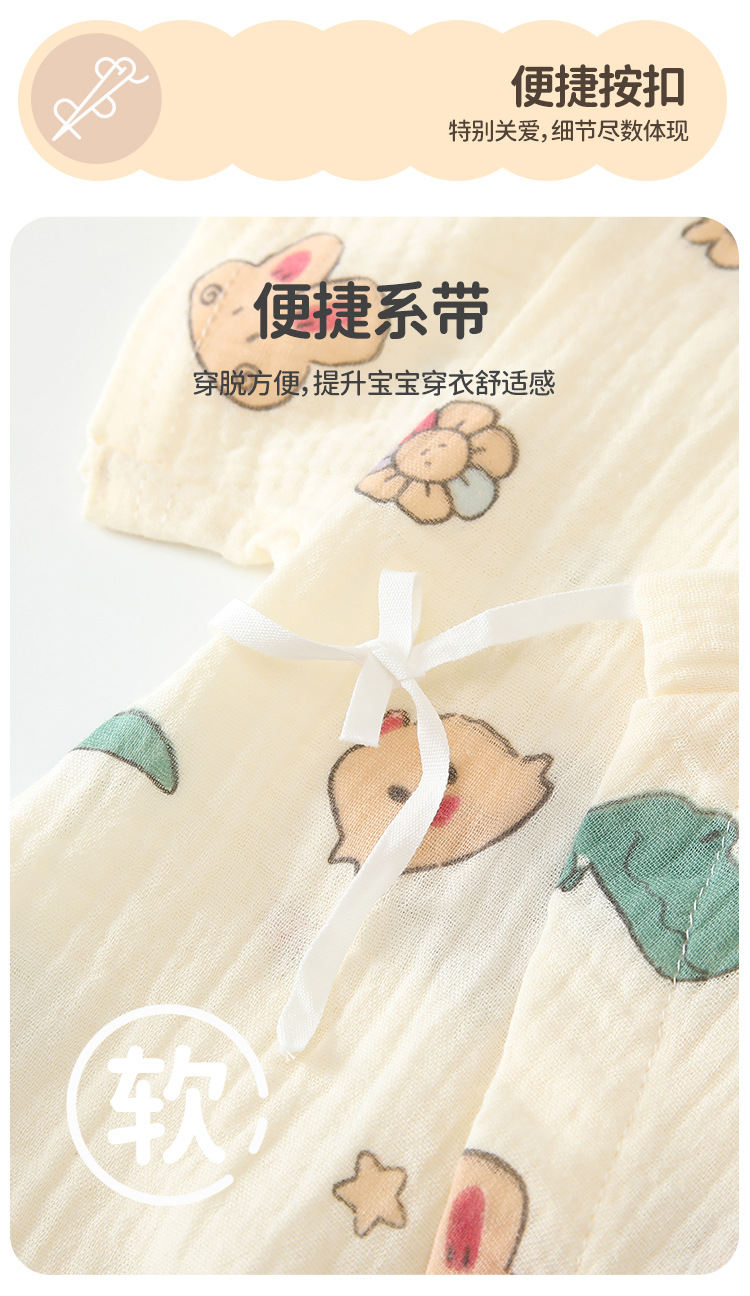 아기 여름 점프 수트 거즈 순수 코튼 신생아 의류 뼈없는 얇은 아기 반팔 모자 에어컨 옷 파자마