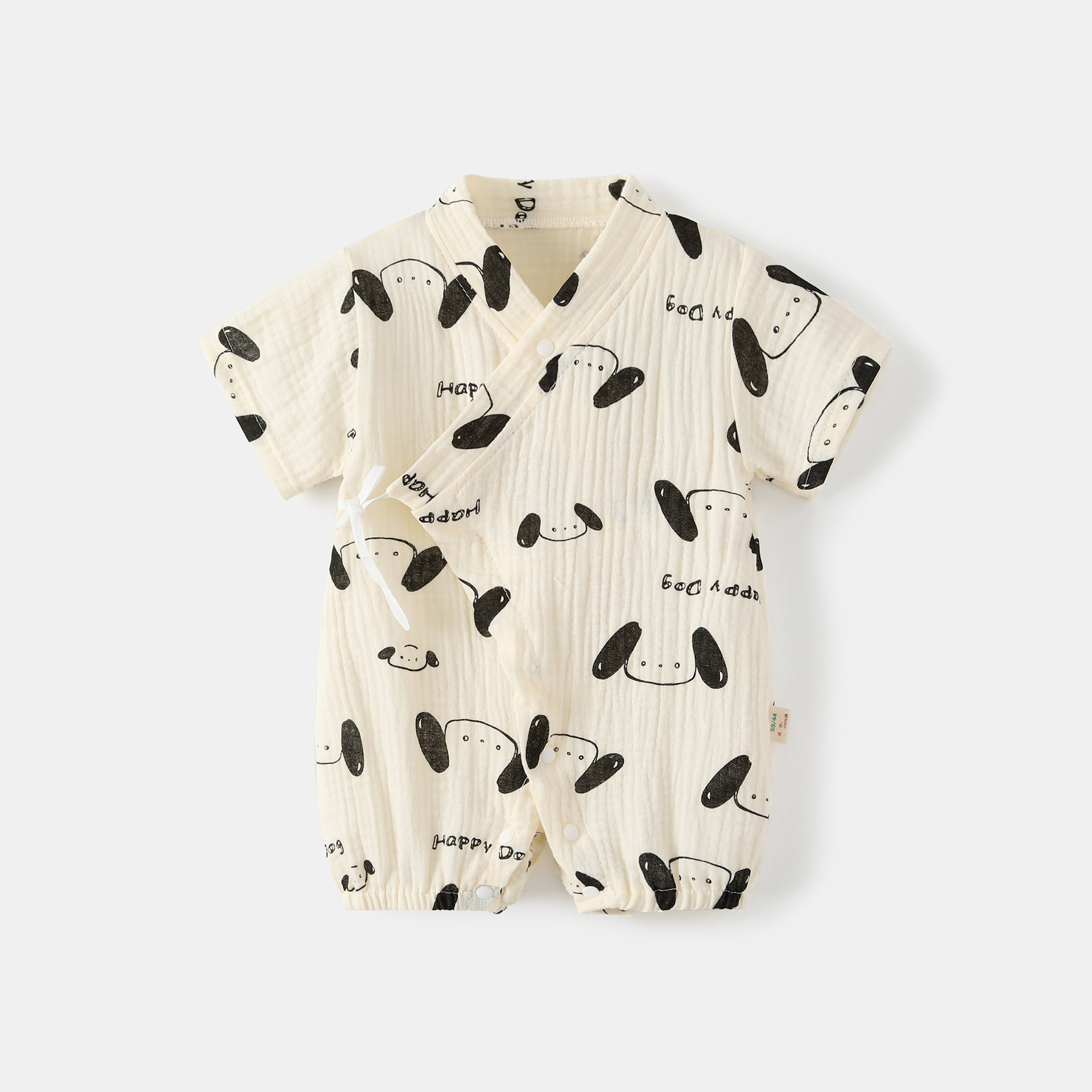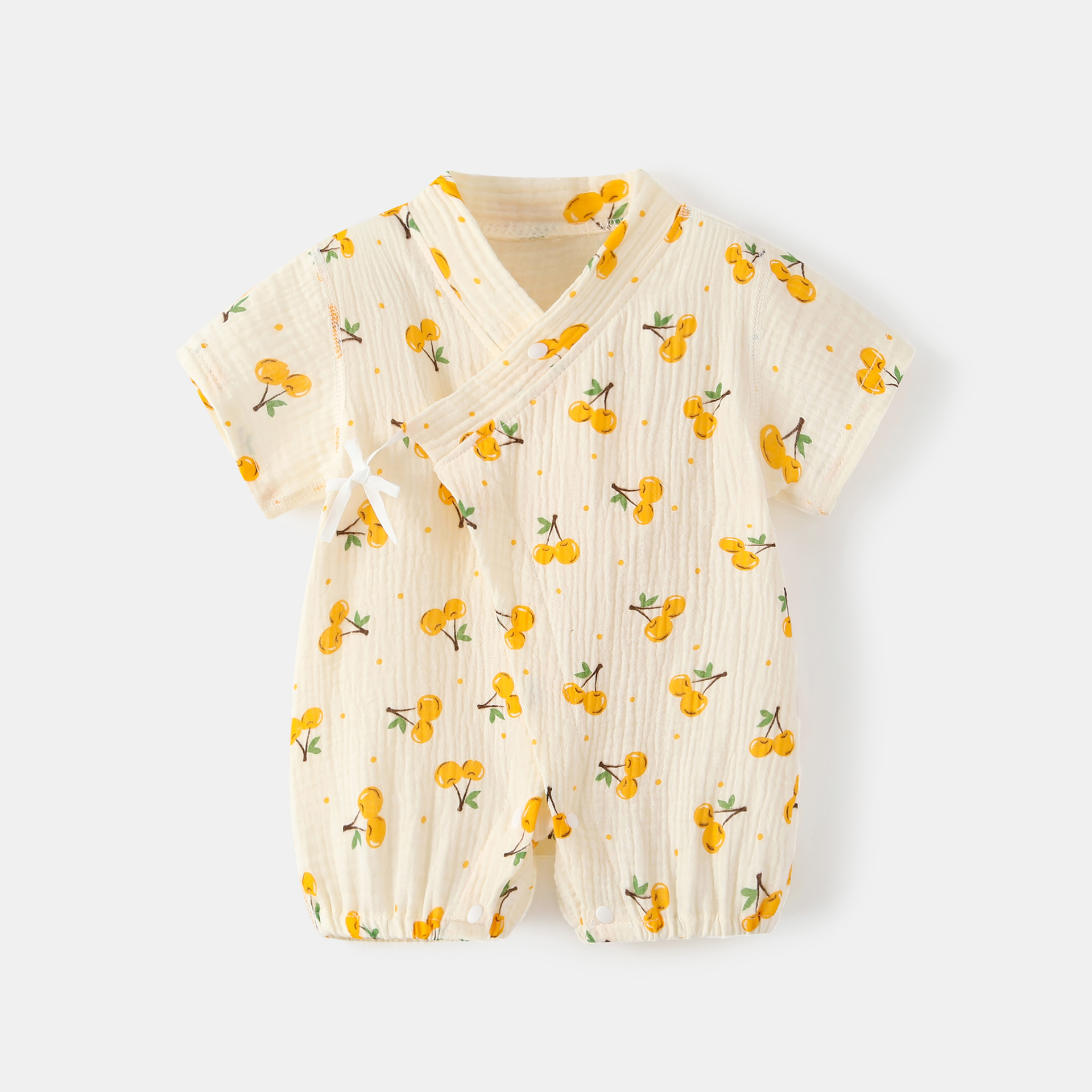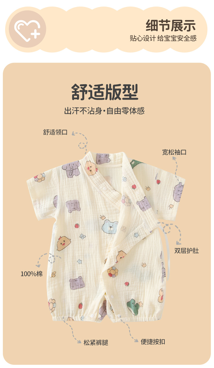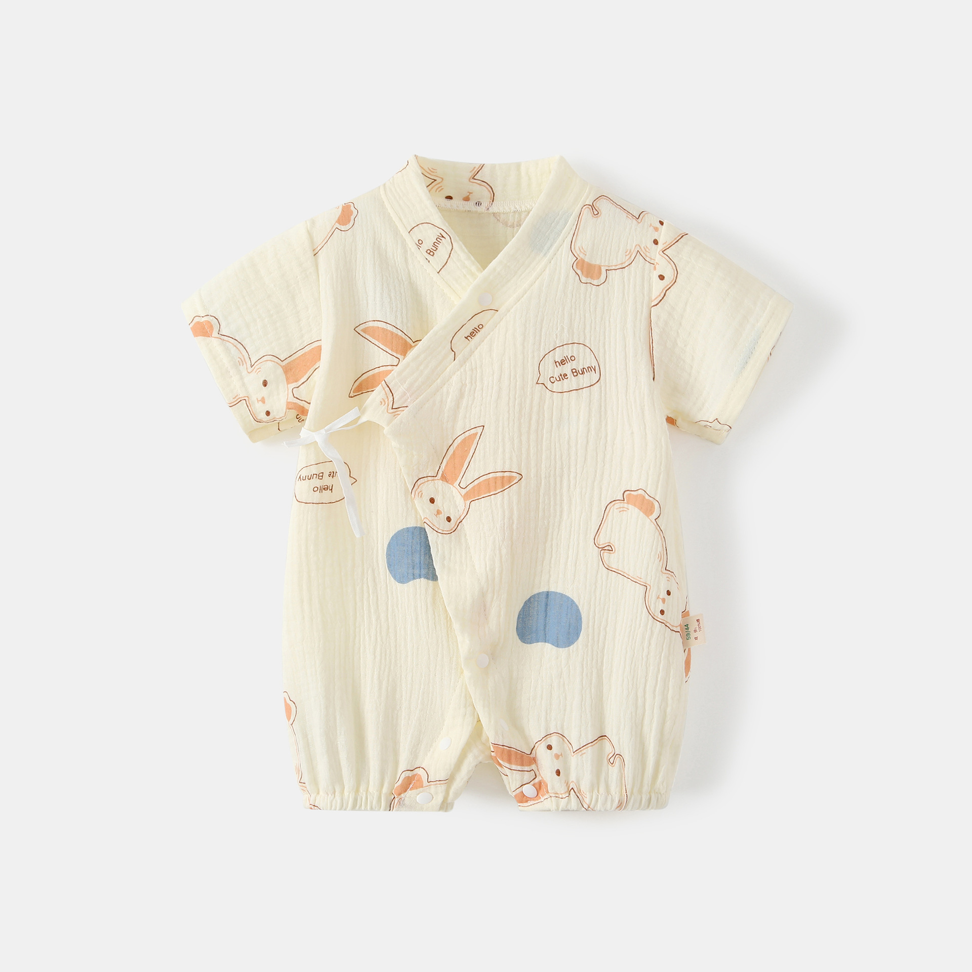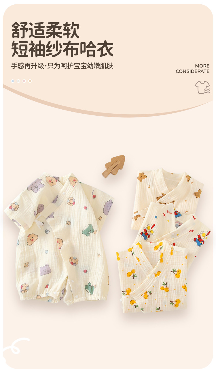 아기 여름 점프 수트 거즈 순수 코튼 신생아 의류 뼈없는 얇은 아기 반팔 모자 에어컨 옷 파자마