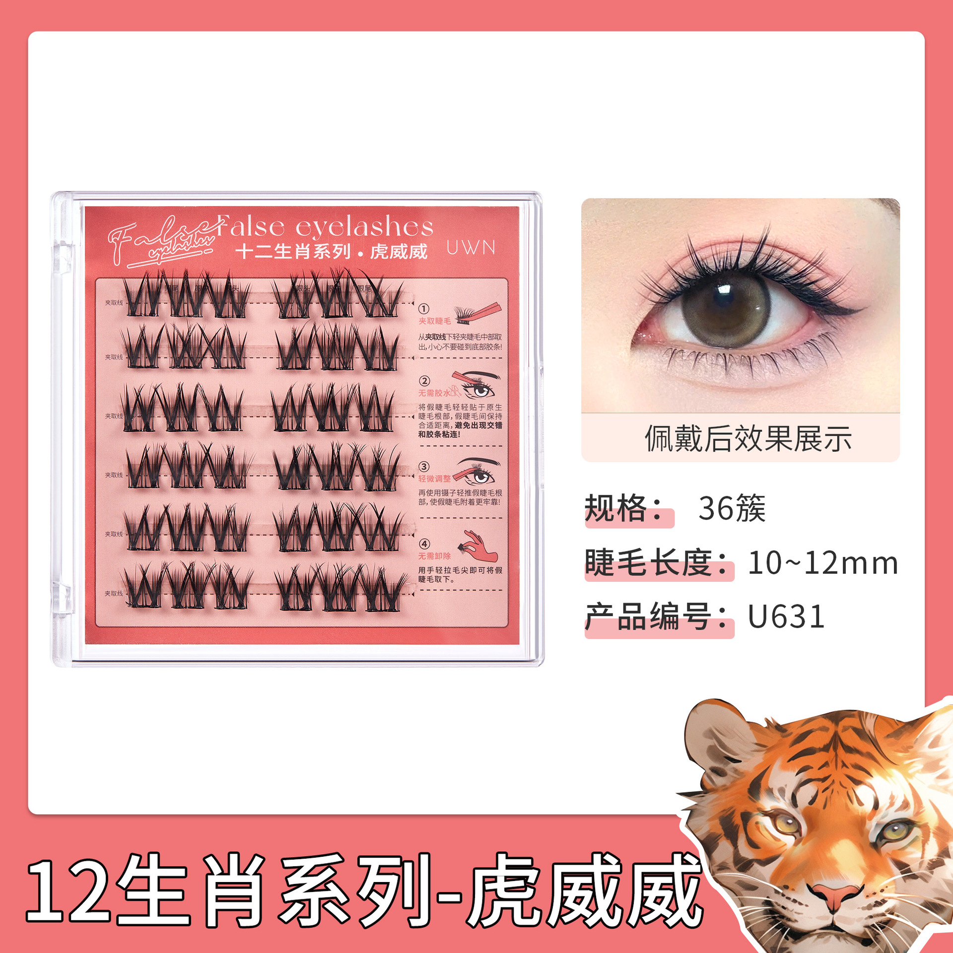 징루이 UWN 열두 띠 무접착 인조 속눈썹 호랑이 무늬 초보자용 무접착 작은 꽃모양 자연스러운 컬 인조 속눈썹스토어 가기