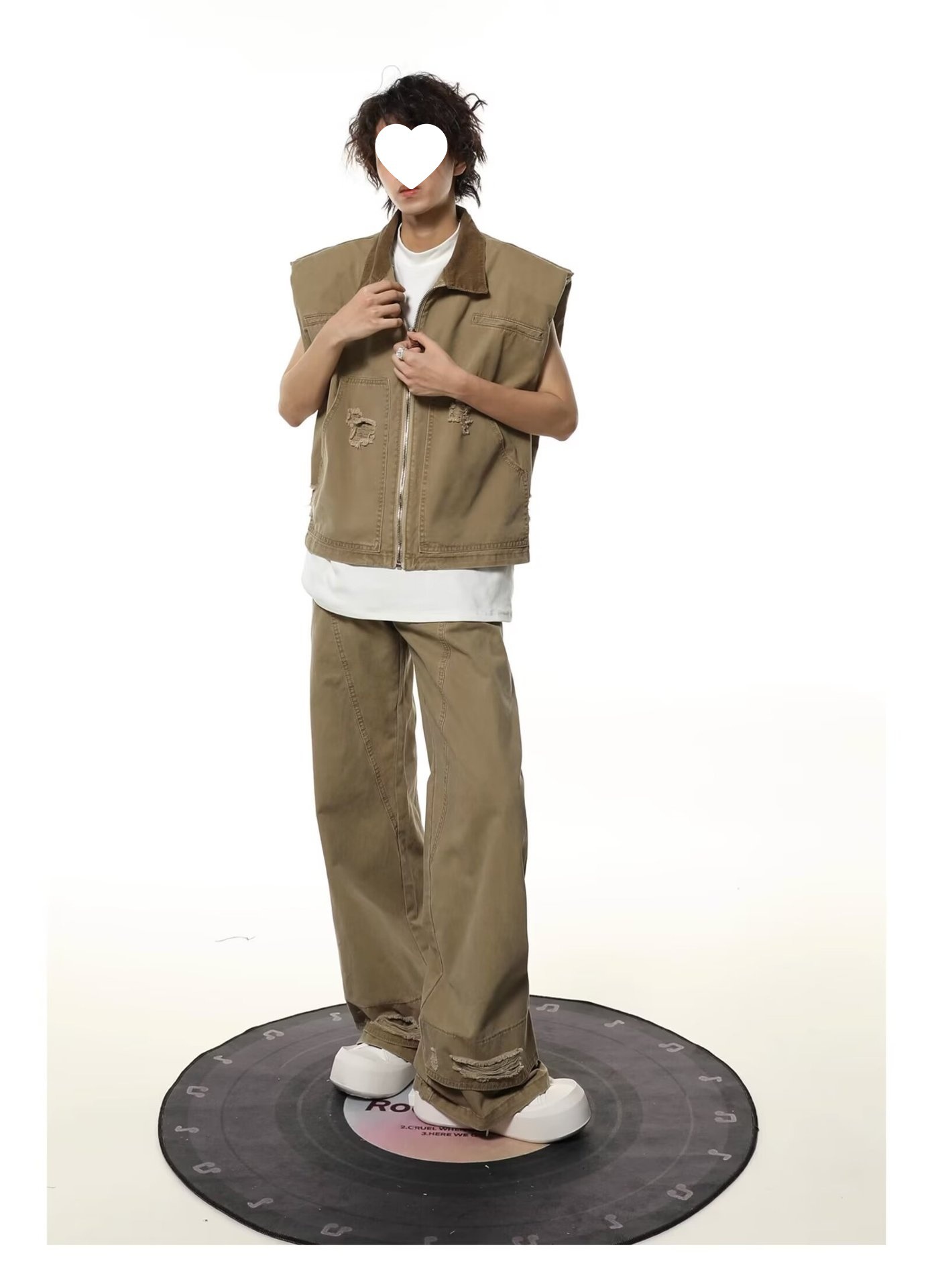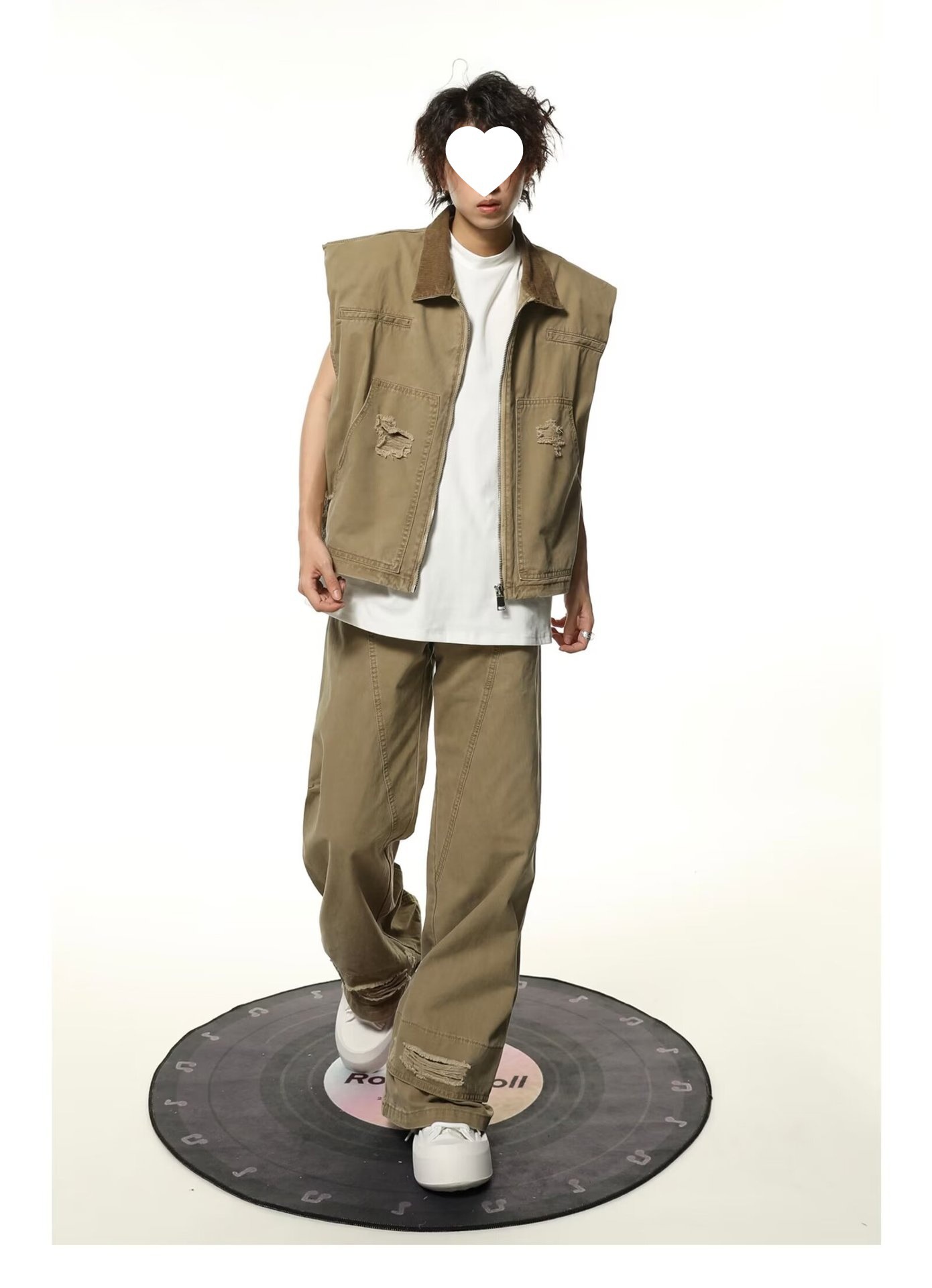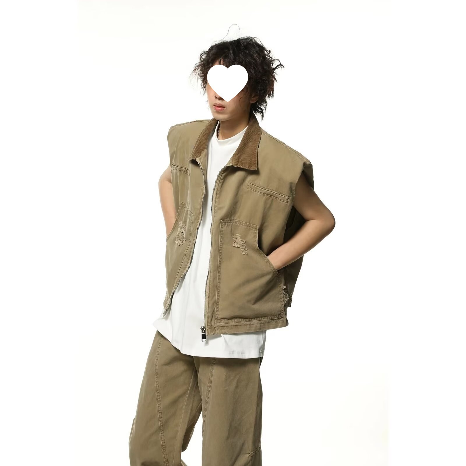 2024 디자인 센스 패딩 어깨 슬림 핏 재킷 파괴 바람 복고풍 하이 스트리트 재킷 크로스 보더