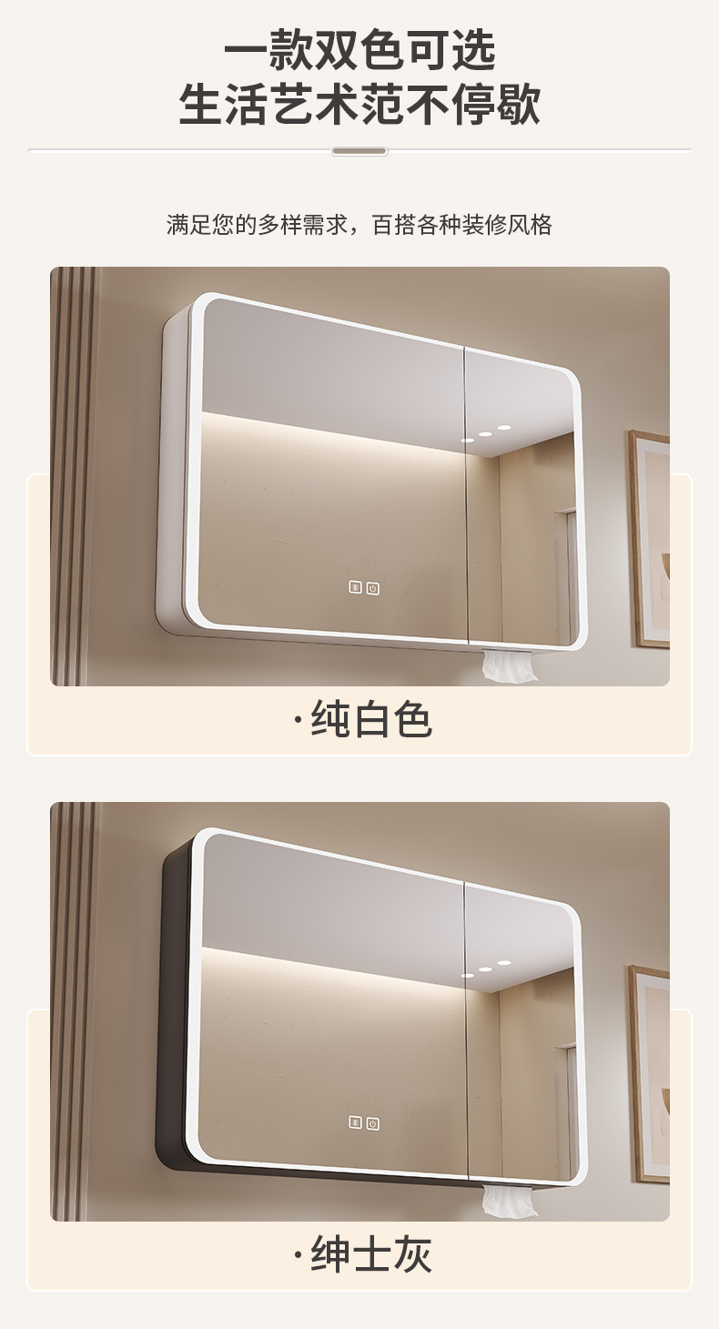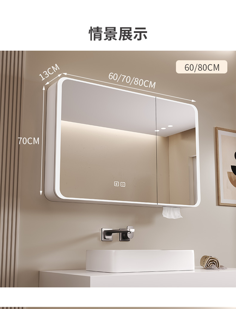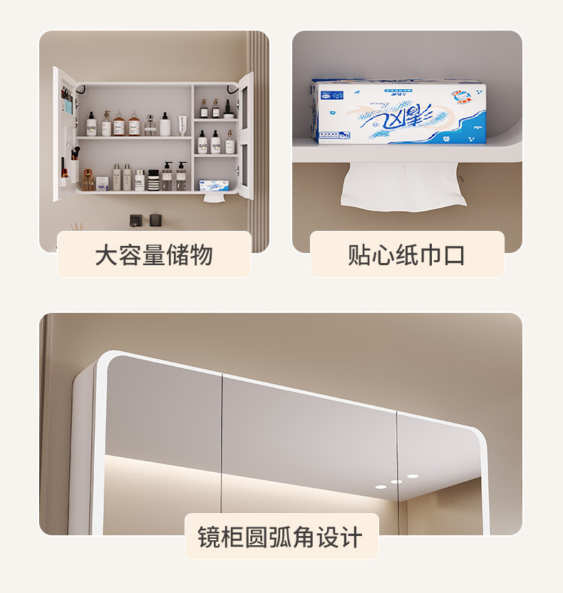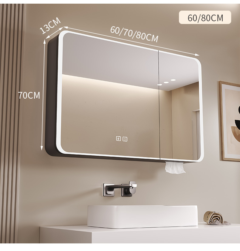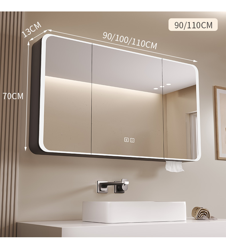 별도의 화장실 거울 상자 벽걸이 형 스마트 미러 라이트 스토리지 신제품 곡선 알루미늄 욕실 거울 캐비닛스토어 가기