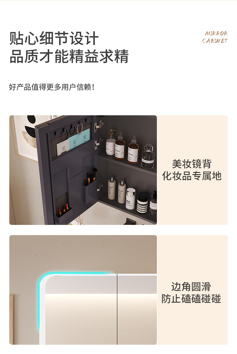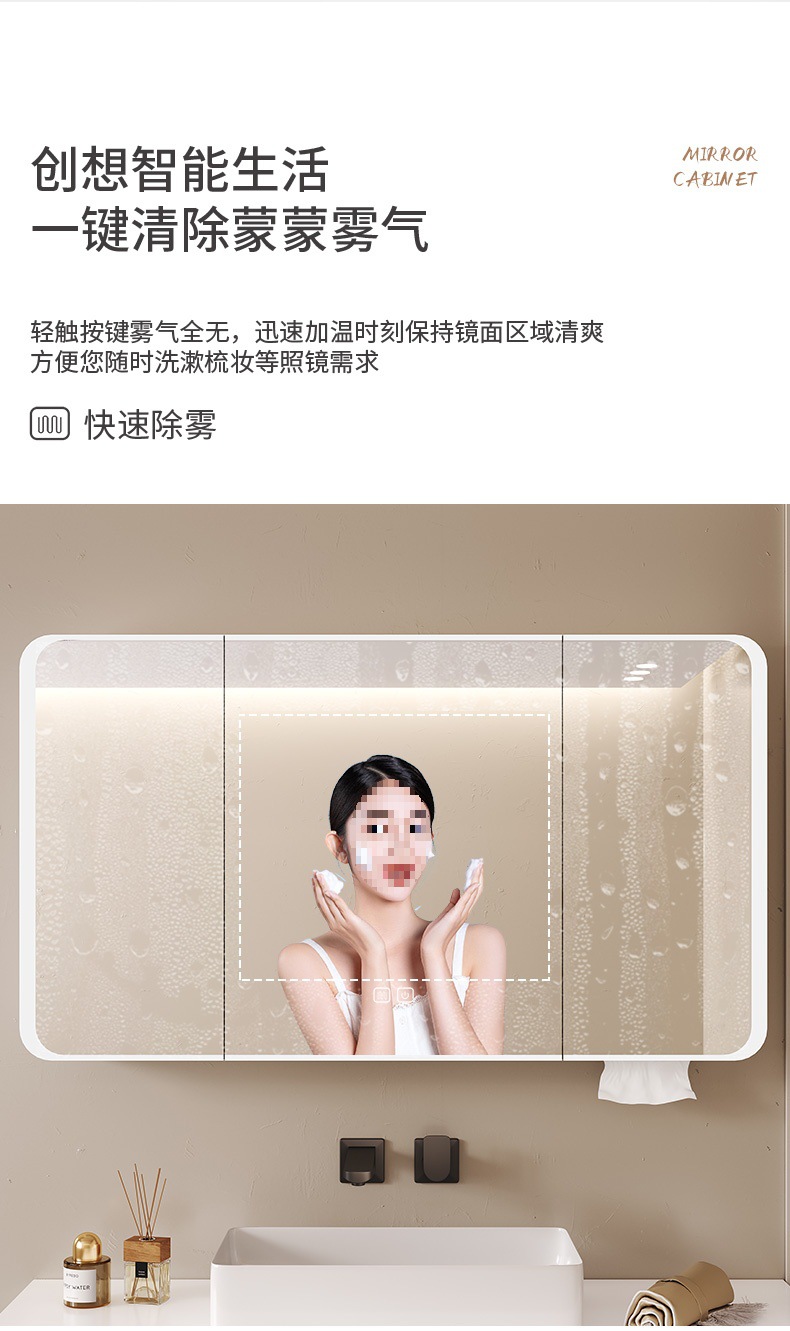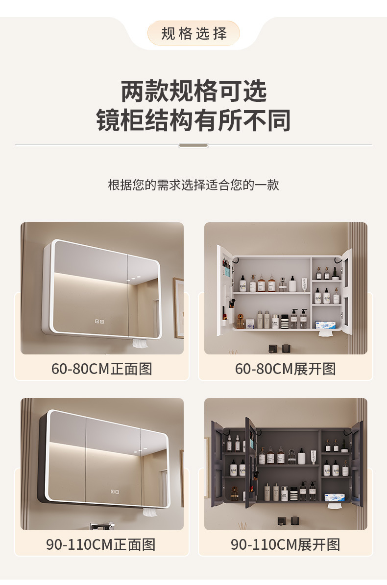 별도의 화장실 거울 상자 벽걸이 형 스마트 미러 라이트 스토리지 신제품 곡선 알루미늄 욕실 거울 캐비닛스토어 가기