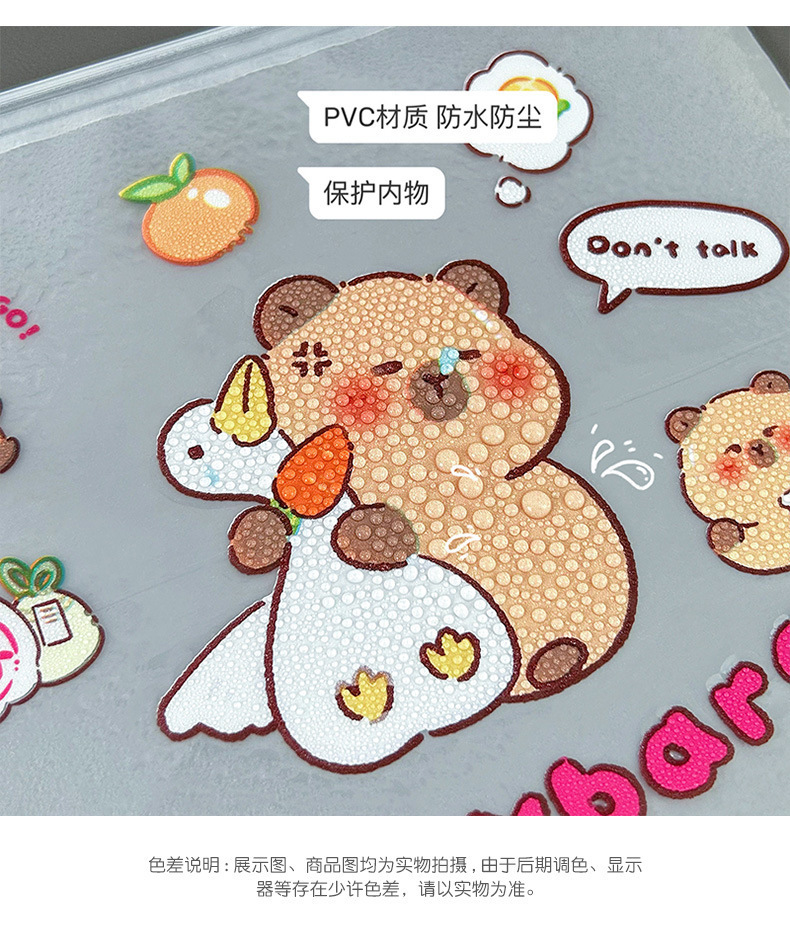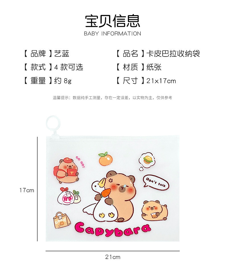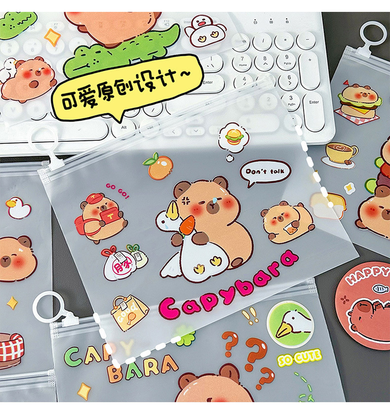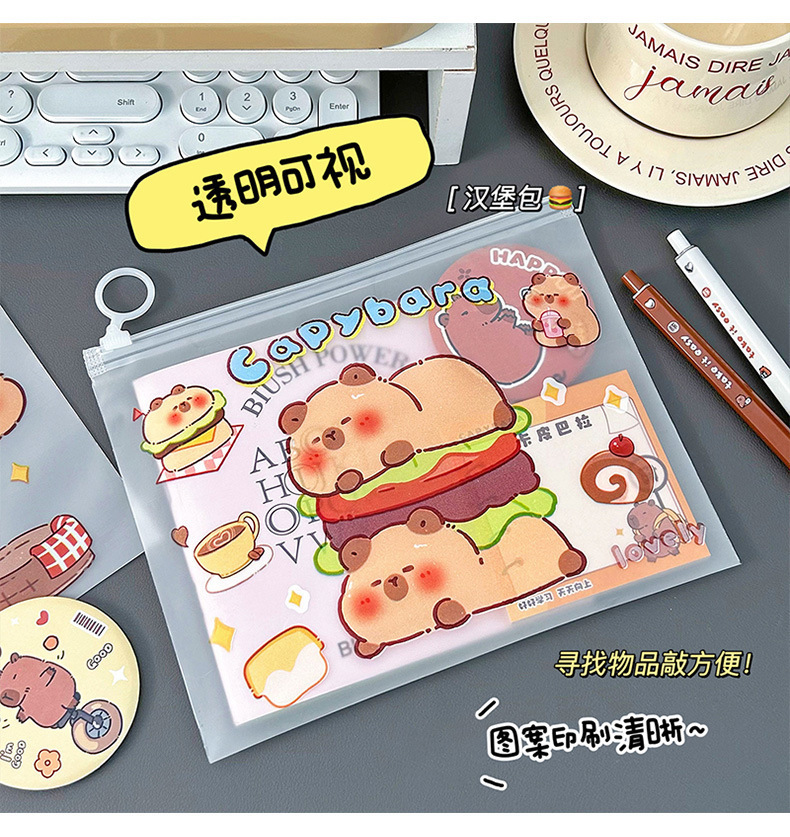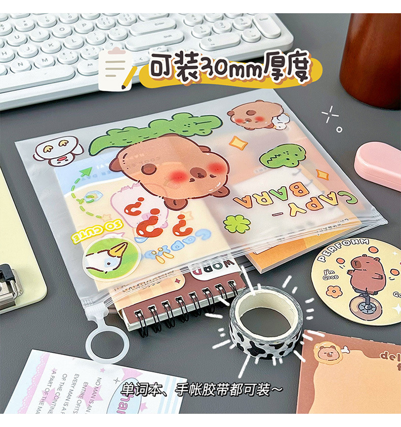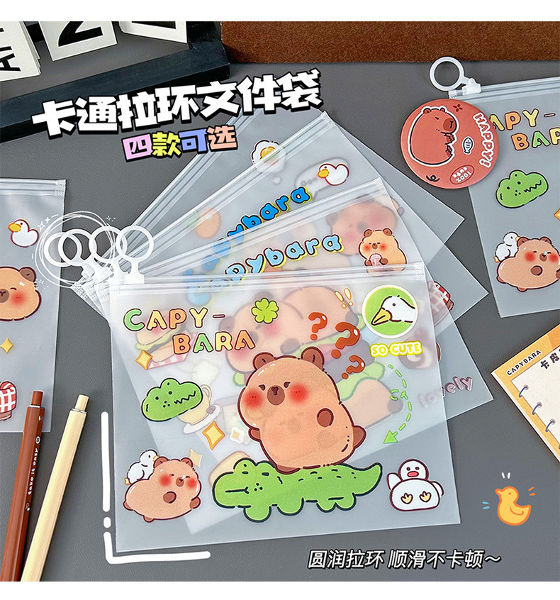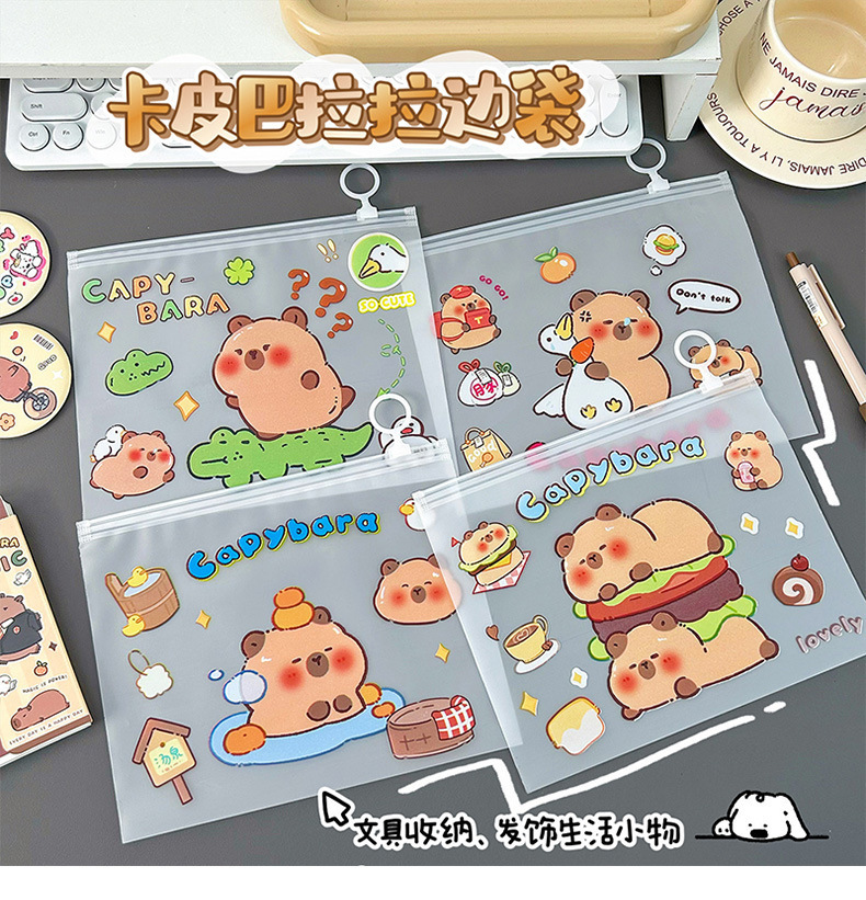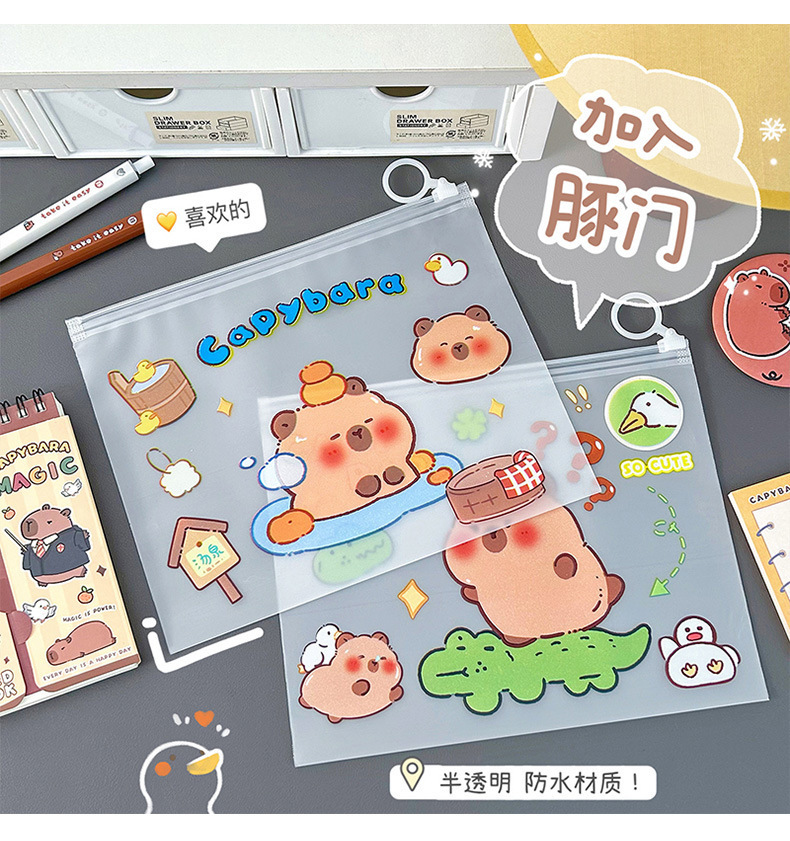 귀여운 기니 돼지 카비 발라 파일 가방 봉인 초등학교 학생 시험 종이 보관 마무리 데이터 북 풀 엣지 가방