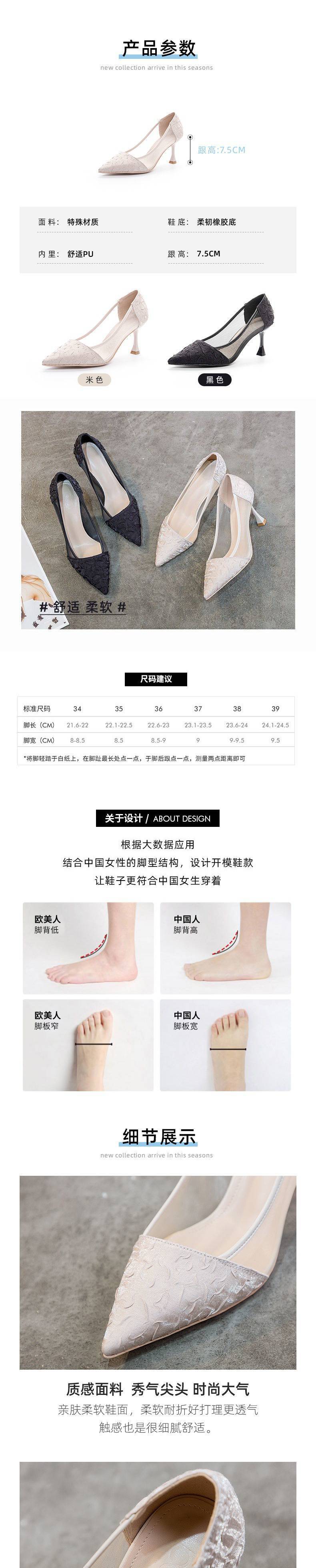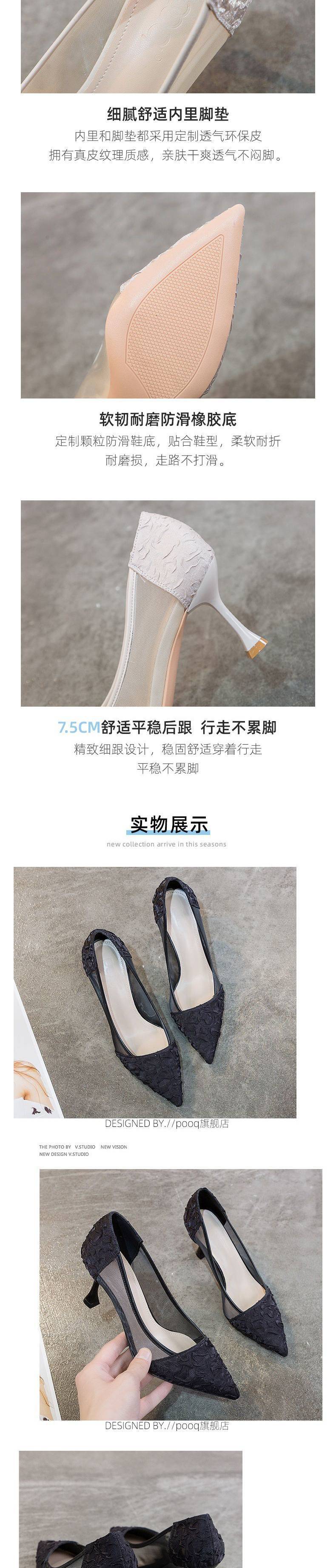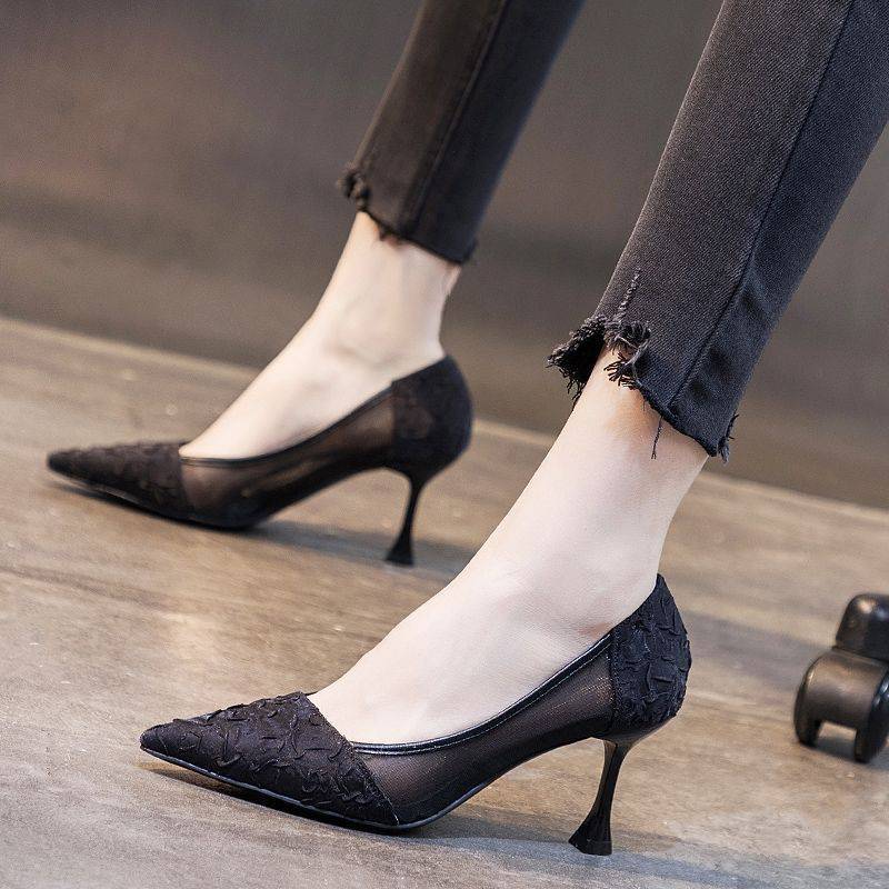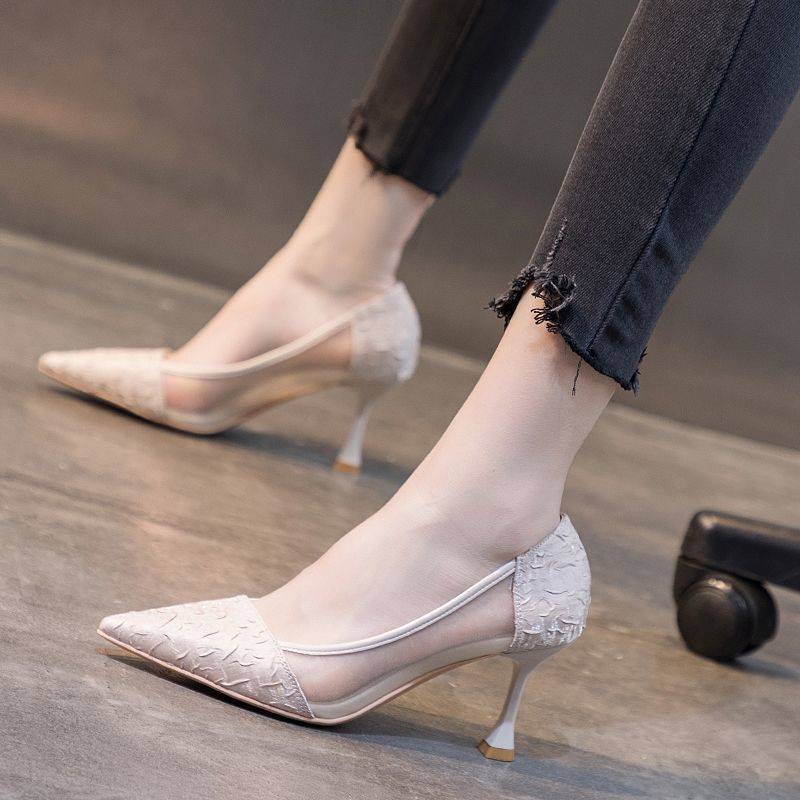 여성용 하이힐 2024 신상 여름 다용도 메쉬 미드 힐 스틸레토 힐 포인티드 토 샌들스토어 가기