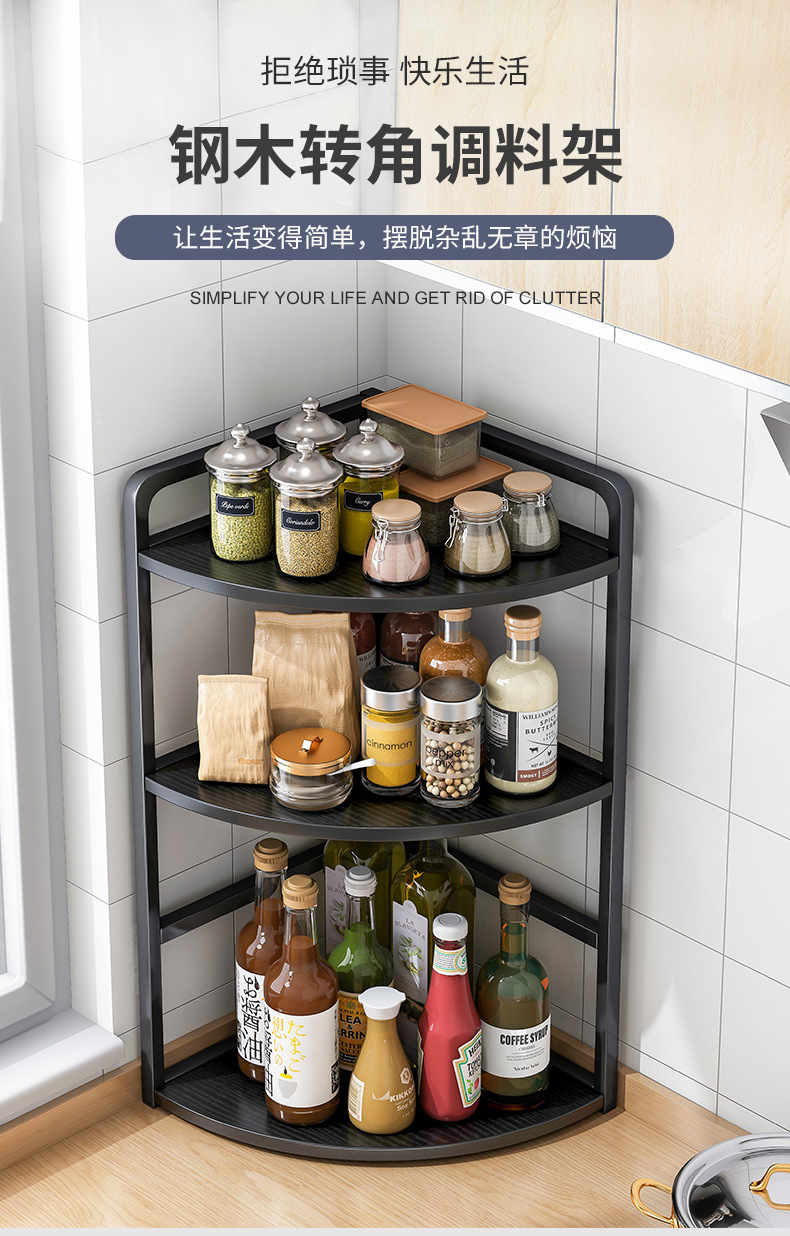 주방 보관 랙 카운터 탑 코너 조미료 선반 선반 삼각형 다기능 양념 랙 보관스토어 가기