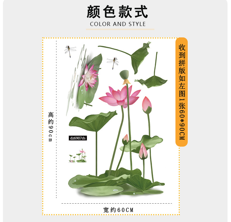 Huizhi 색상 풀 투명 ds 시리즈 벽 스티커 창 침실 벽 장식 그림 PVC 이동식 장식 스티커