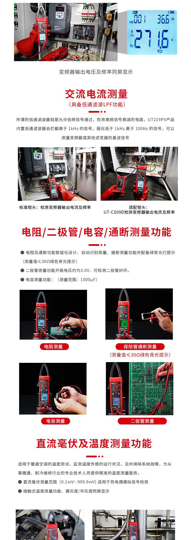 UNI-T Uleid True RMS AC/DC 클램프 미터 유니버설 미터 디지털 멀티 미터 전기 UT219PV스토어 가기