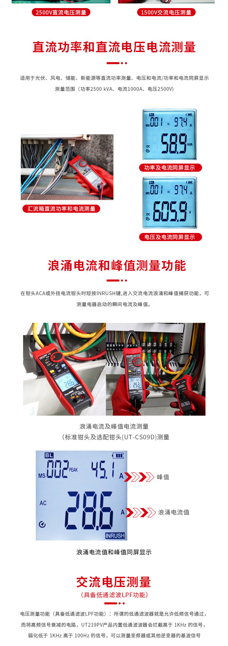 UNI-T Uleid True RMS AC/DC 클램프 미터 유니버설 미터 디지털 멀티 미터 전기 UT219PV