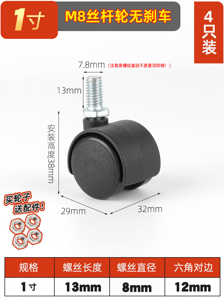 • 1.5inch 스레드 8mm 브레이크 없음(4개 팩)