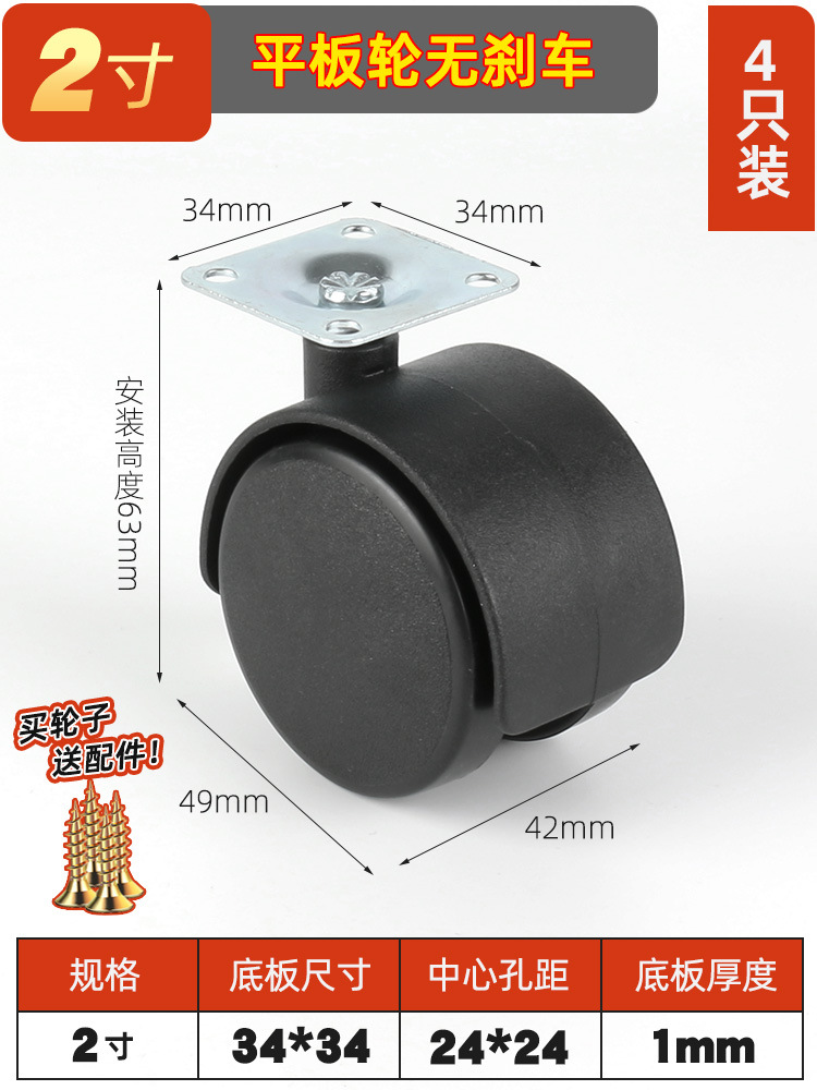 플랫 유니버설 휠 호스트 브래킷 휠 가구 풀리 무거운 실크 치아 캐스터 휠 브레이크 컴퓨터 의자 액세서리 휠